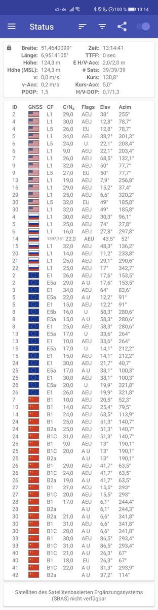 Anche la localizzazione dell'Huawei Mate 40 Pro ha molto da offrire e spesso supporta più bande di frequenza contemporaneamente. Oltre a GPS (dual-band), Glonass, BeiDou (quad-band), Galileo (tri-band) e QZSS (dual-band), è possibile utilizzare anche il NavIC indiano. È disponibile anche il SBAS. Il segnale satellitare si ottiene in modo rapido e relativamente preciso anche all'interno degli edifici.