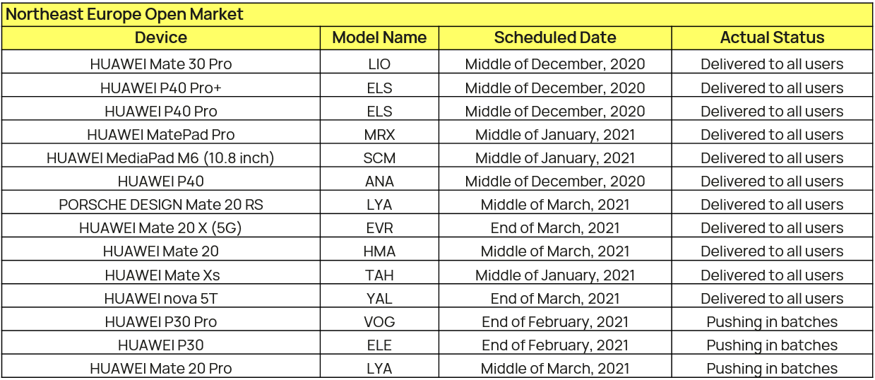 Inizialmente, Huawei aveva promesso di distribuire EMUI 11 a tutti i dispositivi nel Q1 2021, ma questo non si è concretizzato. Infatti, deve ancora finire il suo piano di aggiornamento globale, anche se tutti i dispositivi hanno iniziato a ricevere l'aggiornamento in lotti, come minimo.