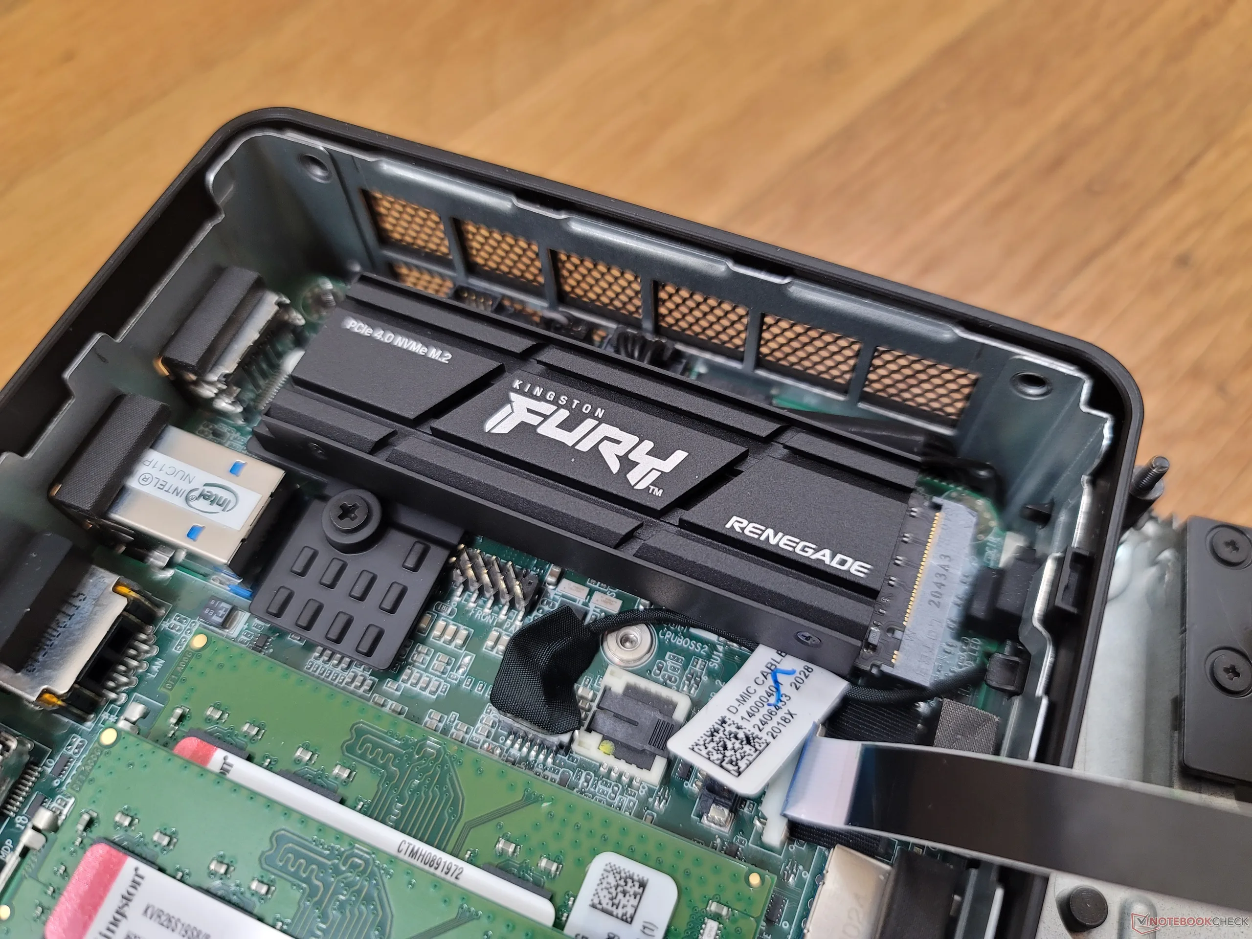 Per il nostro PC host abbiamo utilizzato lo stesso mini PC Intel NUC11 che supporta le unità SSD PCIe4 x4 NVMe. Lo chassis include il proprio dissipatore per SSD, ma noi stiamo usando solo il dissipatore incluso con l'unità Kingston.
