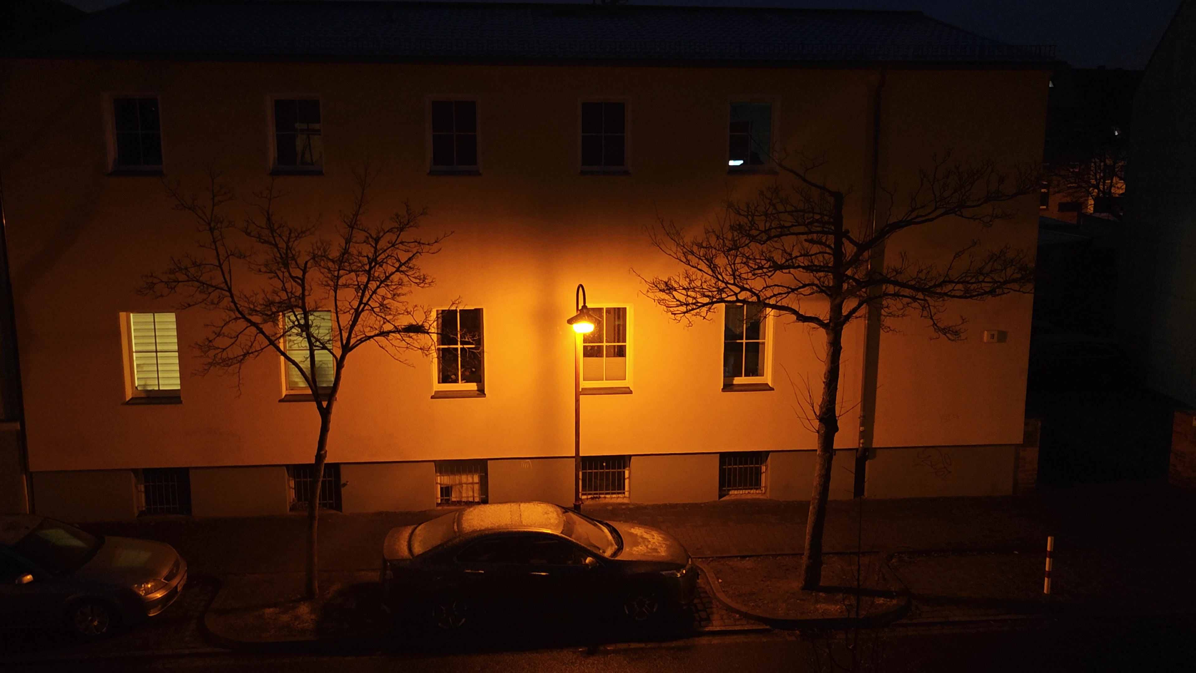 Sorprendentemente, con la funzione HDR attivata, Samsung e Apple hanno seguito lo stesso percorso di Google nella rappresentazione dei colori della casa - solo Xiaomi ha interpretato la situazione di illuminazione in modo simile al suo video con HDR disattivato. A causa di un leggero cambiamento di angolazione, tutti i video dei telefoni hanno mostrato un po' di lens flare sul lampione. Il Google Pixel 7 Proè quello che ne ha risentito meno.