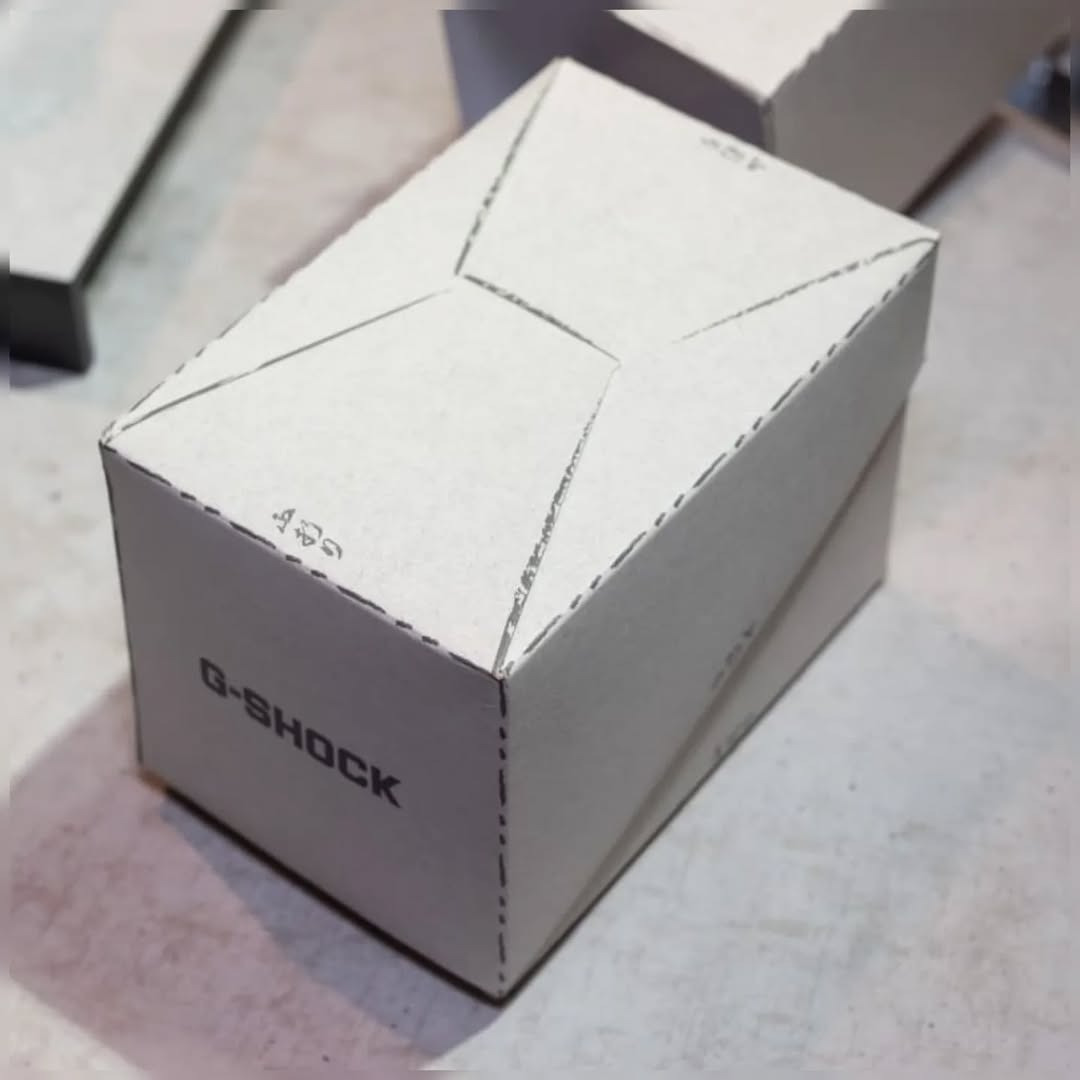 Sul DW-5600RGM-1, le linee di cucitura stampate tracciano i bordi della cassa e i segmenti del cinturino come guide per il taglio e la piegatura, con un'arte di "perforazione" punteggiata intorno alla lunetta che dovrebbe apparire nitida sotto la forte illuminazione della mostra. La stampa monocromatica evita l'emorragia sui bordi e mantiene intatte le proporzioni del quadrato, quindi il design è principalmente grafico. D'altra parte, il DW-6900RGM-5 capovolge completamente la tavolozza - la resina bianca diventa una base per la grafica a punto grigio che accentua la lunetta a strati del 6900 e i ritagli a triplo occhio, e l'allineamento della stampa attraverso i fermi del cinturino e le anse sembra piuttosto stretto. La retroilluminazione EL di entrambi i modelli presenta la silhouette di una gru, visibile anche sul fondello e sulla confezione, che collega la grafica esterna al tema "origami" anziché lasciarla come decorazione solo superficiale.