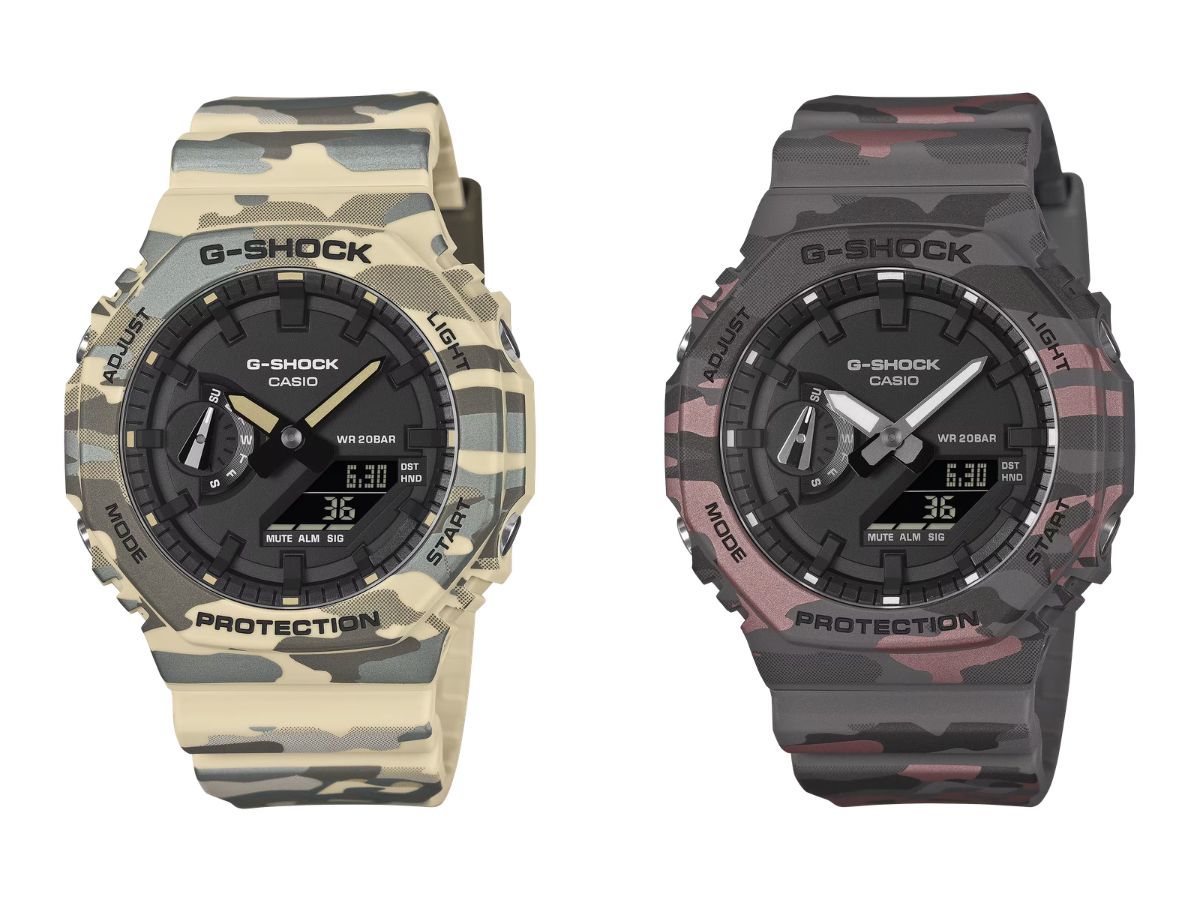 Casio ha rilasciato i nuovi orologi mimetici Serie G-Shock 2100 nel Regno Unito. La gamma comprende tre varianti - il GA-2100CM-5A, il GA-2100CM-8A e il Casio G-Shock GA-2100CMD-8A - che sono state lanciate in Giappone nel febbraio 2026 lanciato in Giappone nel febbraio 2026.
