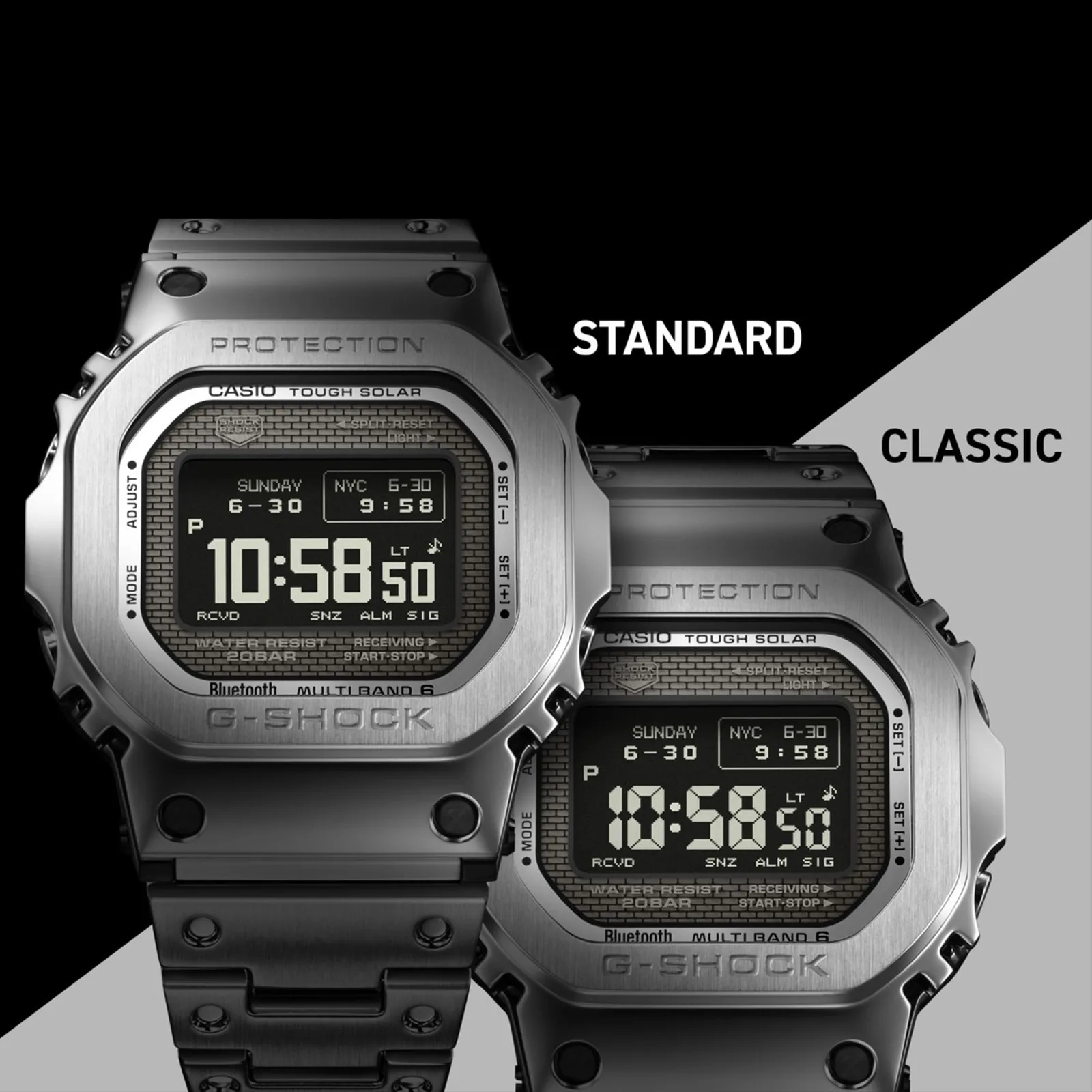 Tecnicamente, questo è il primo quadrato in metallo pieno ad utilizzare un display LCD con memoria in pixel (MIP) ad alto contrasto, per un layout digitale più nitido e flessibile rispetto ai precedenti G-SHOCK, comprese le configurazioni multiple di visualizzazione dell'ora e i caratteri commutabili (Standard o Classic a 7 segmenti) tramite l'applicazione companion. Sotto il cofano, gli acquirenti avranno la scheda tecnica standard degli orologi-strumento G-Shock: resistenza all'acqua a 20 bar, ricarica Tough Solar, struttura resistente agli urti, Bluetooth Smartphone Link, controllo radio Multiband 6, ora mondiale, cronometro, timer per il conto alla rovescia, cinque sveglie e retroilluminazione LED completamente automatica.