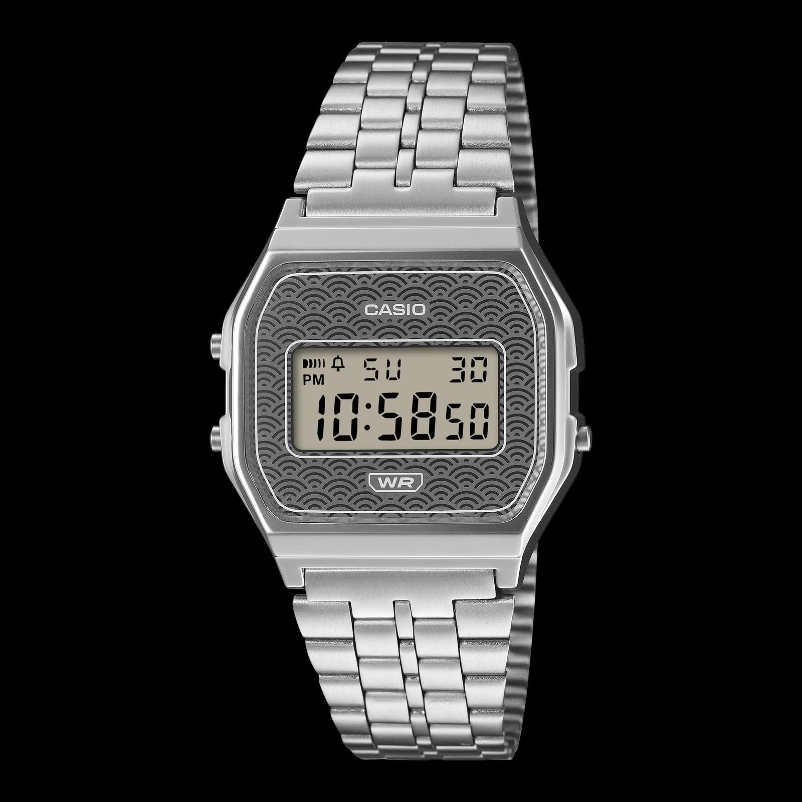 L'aggiornamento è soprattutto visivo. Entrambi i modelli presentano motivi a onda in stile Seigaiha sul quadrante, un motivo tradizionale giapponese composto da archi ripetuti. Il modello blu A159WEVJ-2 utilizza una tonalità indaco profondo, mentre il modello A159WEVJ-7 si presenta con una finitura grigio-argento più attenuata. Casio afferma che il quadrante utilizza sia elementi stampati che deposizione di vapore, motivo per cui ha un aspetto leggermente luccicante.