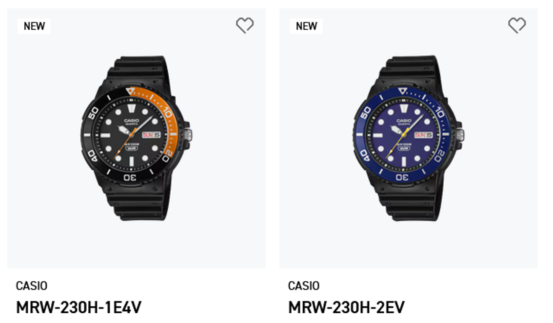 Casio ora ha elencato ufficialmente altri due orologi sul suo sito web internazionale - MRW-230H-1E4V e MRW-230H-2EV. Questo conferma i precedenti avvistamenti dei rivenditori. Questi modelli erano già erano già apparsi nei listini di vendita al dettaglio internazionali tramite Belloquindi questa è la loro prima presenza ufficiale sulla piattaforma globale di Casio.