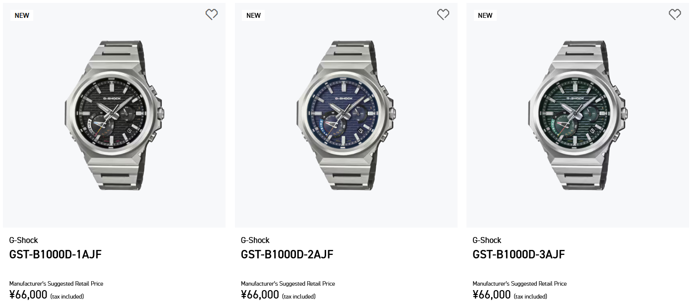 Casio ha ora elencato ufficialmente la sua nuova serie G-Steel GST-B1000 sul sito web giapponese, confermando ciò che le fughe di notizie passate e gli annunci dei rivenditori hanno suggerito per mesi. Questo elenco verifica le tempistiche di lancio, i dettagli del modello e i prezzi di tutte e tre le varianti principali: GST-B1000D-1AJF (quadrante nero), GST-B1000D-2AJF (quadrante blu) e GST-B1000D-3AJF (quadrante verde).