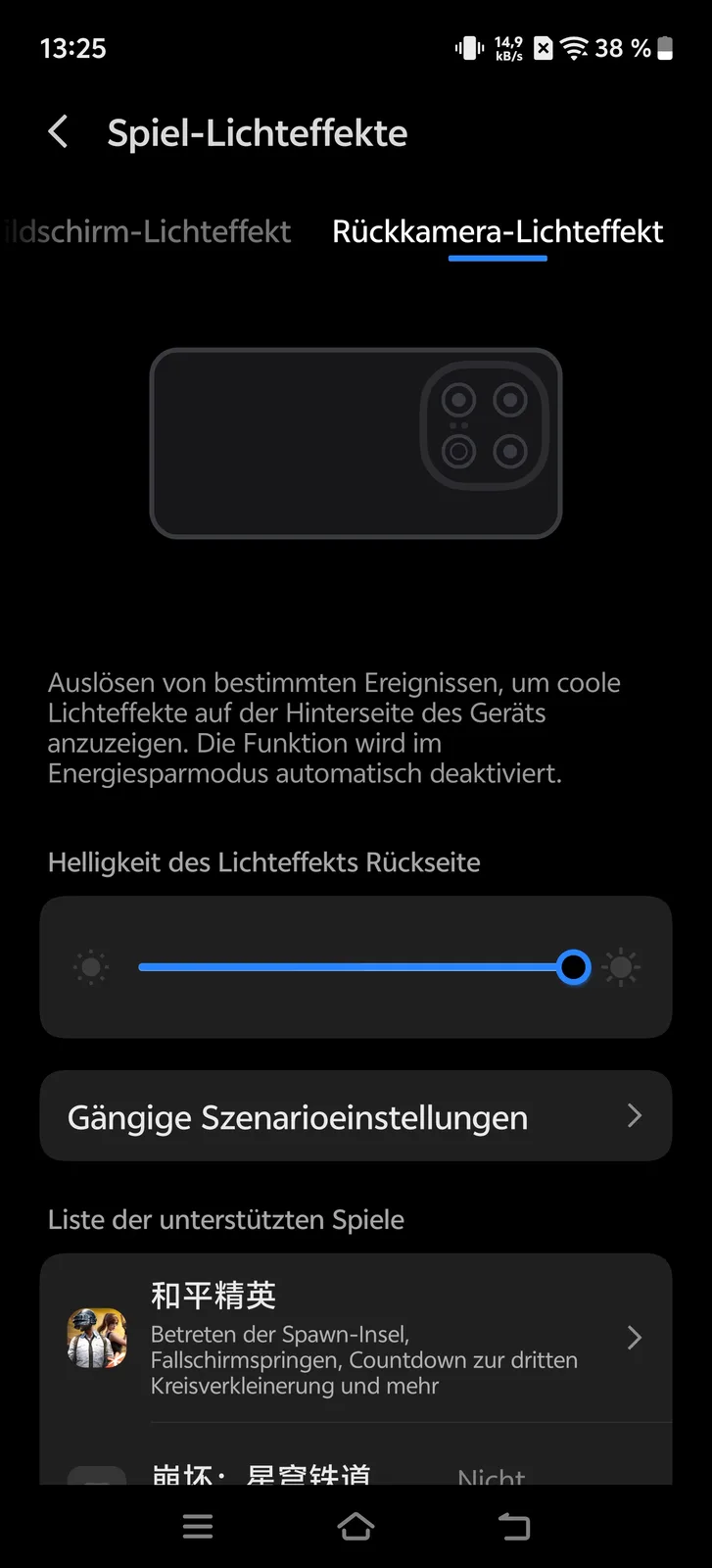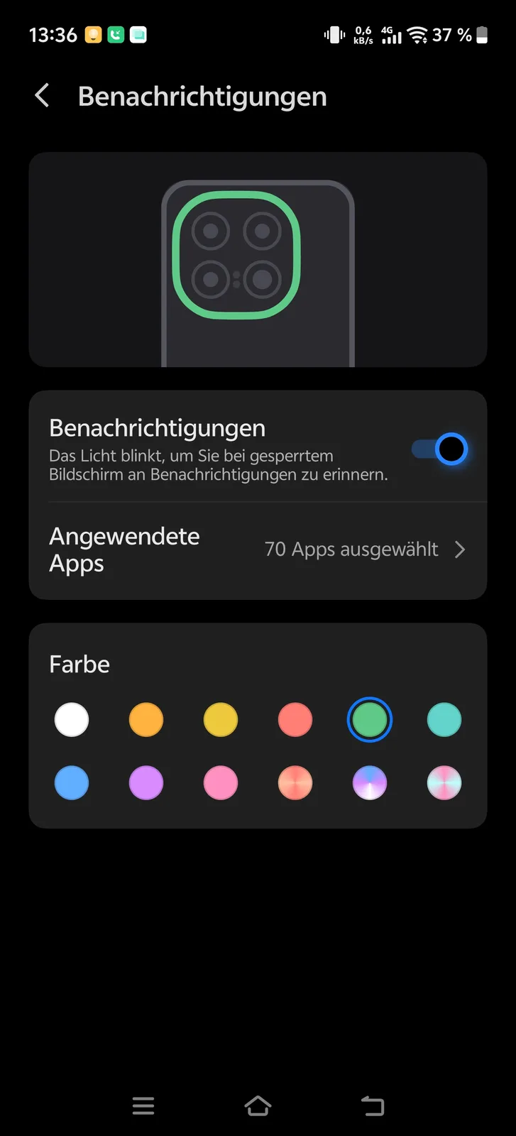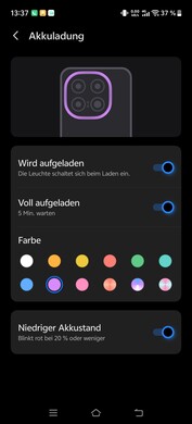 Oltre a varie impostazioni per diversi giochi Android, l'elemento luminoso dinamico sul retro può essere utilizzato per le notifiche. Le applicazioni possono essere configurate o disattivate individualmente. Sia il colore che l'effetto del display possono essere personalizzati in base alle preferenze personali