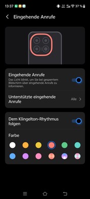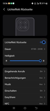 Oltre a varie impostazioni per diversi giochi Android, l'elemento luminoso dinamico sul retro può essere utilizzato per le notifiche. Le applicazioni possono essere configurate o disattivate individualmente. Sia il colore che l'effetto del display possono essere personalizzati in base alle preferenze personali