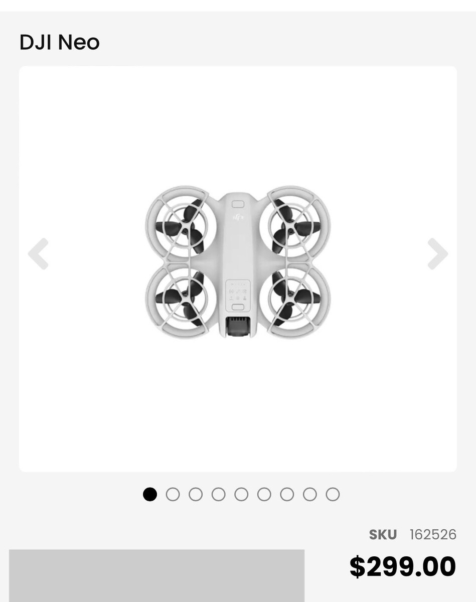 Tuttavia, la ricerca dell'annuncio rivela che digiDirect ritiene che il DJI Neo sarà venduto al prezzo di 299 dollari australiani (~200 dollari) da solo, prima di considerare gli accessori come il controller remoto. In altre parole, il DJI Neo potrebbe essere molto più economico del previsto; precedenti indiscrezioni suggerivano che il drone potrebbe arrivare negli Stati Uniti a un prezzo più vicino ai 300 dollari. Per i dettagli hardware, consulti gli screenshot qui sotto.