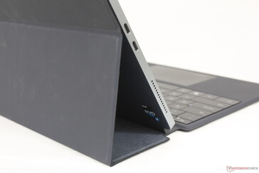 Lungo il bordo sinistro sono presenti solo due porte USB-C, ognuna delle quali è compatibile con i dispositivi Thunderbolt 4. Gli utenti dovranno dotarsi di docking station e adattatori per sfruttare al meglio le due porte. Si tenga presente che non c'è nemmeno un jack audio da 3,5 mm, mentre il Surface Pro 8 ne è dotato.