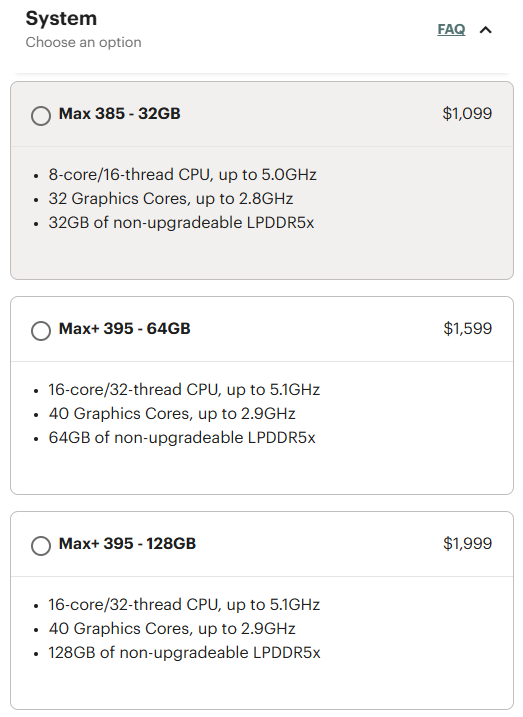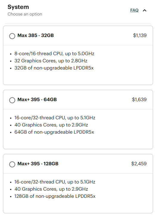 Il modello di fascia alta è stato particolarmente colpito dall'aumento di prezzo perché richiede otto chip da 128 Gbit, i cui costi sono aumentati notevolmente. La configurazione da 128 GB viene ora venduta a 2.459 dollari, con un aumento di 460 dollari. Sebbene il prezzo più elevato possa rendere questa versione meno interessante per gli sviluppatori di AI, il Framework Desktop rimane un forte concorrente rispetto ai mini-PC con specifiche simili, come il GMKtec Evo-X2 con lo stesso processore e 128 GB di RAM(circa 2.300 dollari su Amazon).
