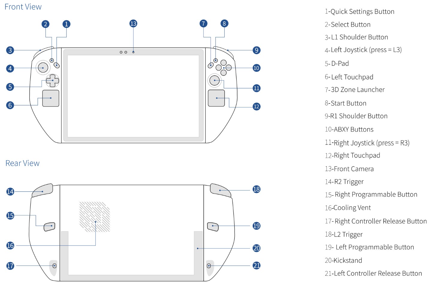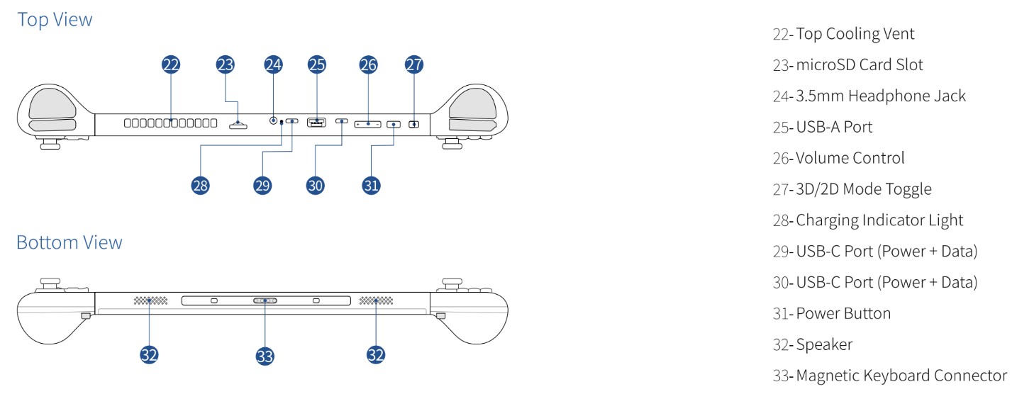 Ha un peso di 0,87 kg (1,92 libbre), che è simile a quello di un Surface Pro 10 con 0,885 kg (1,95 libbre). I controller di gioco full-size con joystick Hall Effect aggiungono altri 0,24 kg (0,53 libbre) quando sono collegati. Come il Surface Pro, è possibile acquistare una tastiera e un supporto opzionali, che permettono di utilizzare il 3D One come un computer portatile 2-in-1.