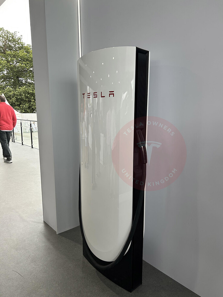 La pila di Supercharger Tesla V4 con un'infrastruttura rudimentale per il pagamento con carta ha fatto un cameo al "più grande garden party automobilistico del mondo", il Goodwood Festival of Speed nel Regno Unito. Il club Tesla Owners UK si è preso tutto il merito dell'idea e dell'esecuzione, poiché da tempo chiedeva a gran voce la presenza di schermi a pagamento sulle infrastrutture di ricarica pubbliche del Regno Unito, anche per i caricabatterie Tesla.