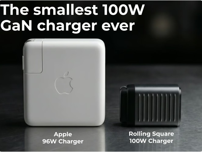 L'anno scorso, Rolling Square ha rilasciato un caricabatterie GaN da 65Wche sosteneva di essere il caricabatterie da 65W più piccolo al mondo. Quest'anno, ha fatto seguito con un nuovo modello da 100W, che ha una potenza maggiore ed è anche pubblicizzato come il caricatore più piccolo (100W) al mondo.