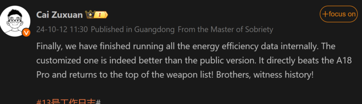 Più precisamente, citando i dati interni di OnePlus, il dipendente sostiene che il SoC Snapdragon personalizzato è in grado di battere l'A18 Pro Apple A18 Pro in termini di efficienza energetica. Cai Zuxuan afferma che questo farebbe sì che Qualcomm recuperi il primo posto nella classifica.
