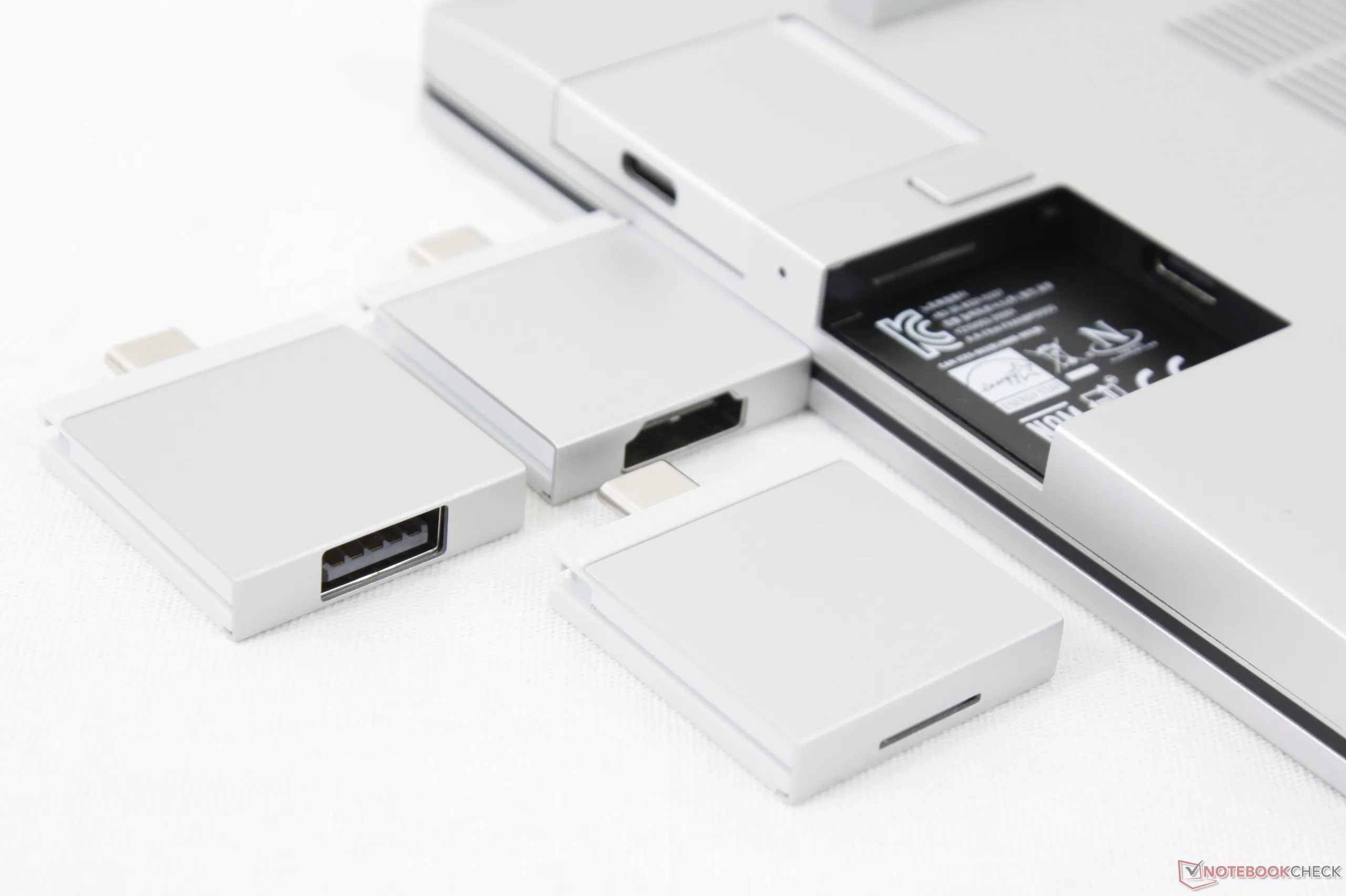 Il concetto è reso ancora più semplice dal fatto che il portatile Framework non utilizza alcuna connessione proprietaria. Le schede di espansione stesse sono proprietarie per dimensioni e design fisico, come mostrato dall'immagine qui sotto, ma utilizzano gli stessi connettori USB-C di qualsiasi adattatore aftermarket.