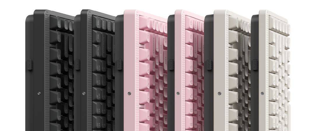 L'estetica di NuPhy Node75 è pulita e di ispirazione retrò, con la barra a sfioramento nella parte superiore della tastiera caratterizzata da una griglia di punti e l'intera tastiera disponibile nei colori beige, rosa e grigio antracite. Anche i profili nSA e mSA di NuPhy aggiungono un aspetto retrò, grazie alla loro somiglianza con i classici profili SA presenti sulle vecchie tastiere Apple e IBM.