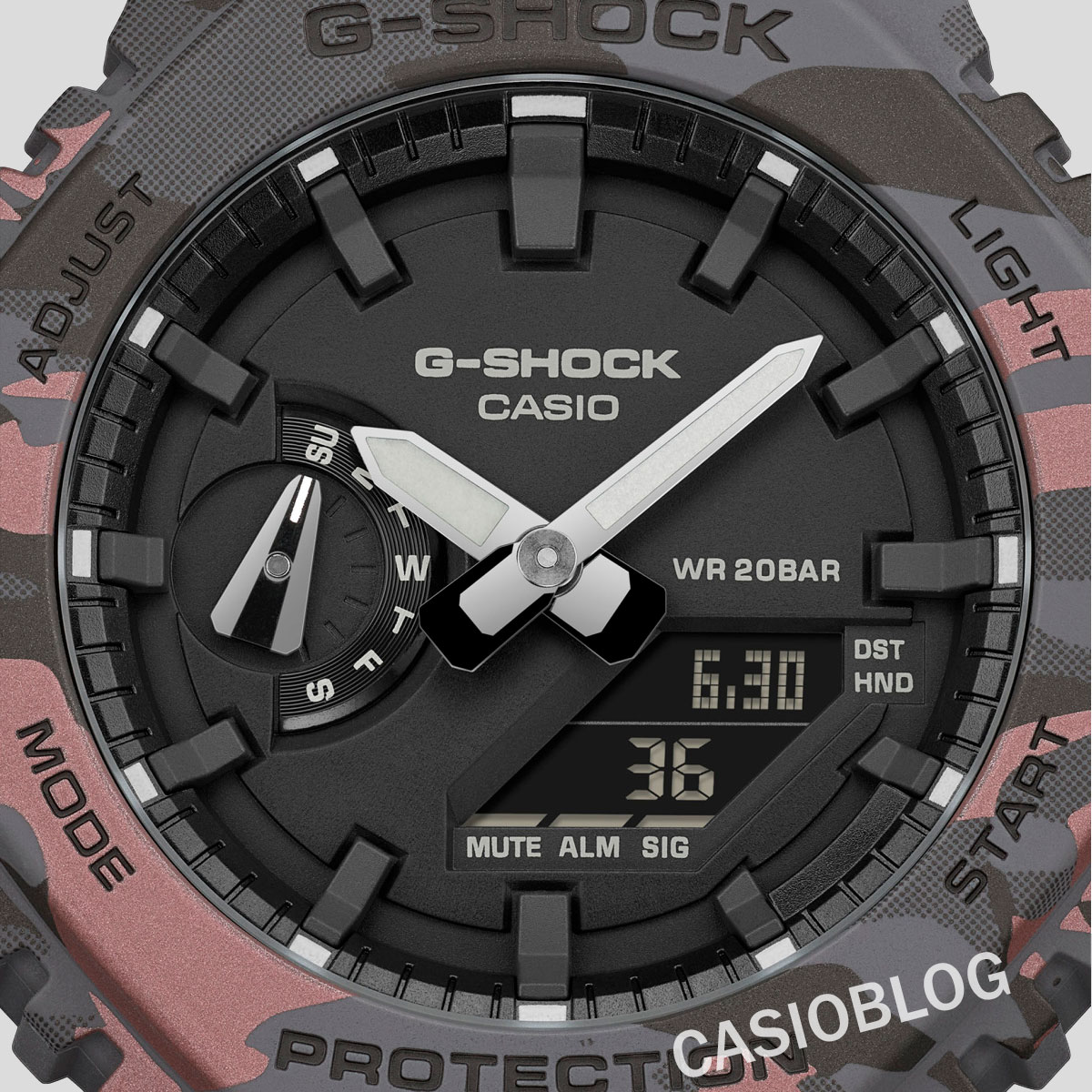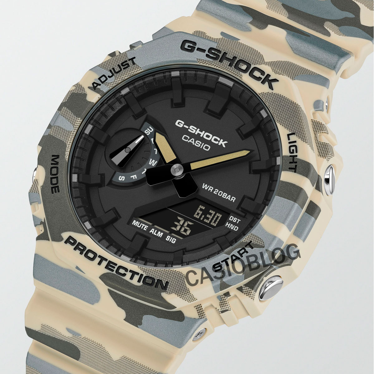 Come si può vedere nelle immagini allegate, Casio punta molto sull'estetica tattica, con entrambi i modelli che presentano display invertiti (negativi), abbinati a cinturini e lunette con motivi mimetici militari. Il GA-2100CM-8A ha una mimetica color malva taupe e grigio-pesante, mentre il GA-2100CM-5A opta per una mimetica color sabbia e beige ispirata al deserto. Secondo Casioblog, i motivi a puntini che appaiono accanto alle strisce mimetiche sono applicati utilizzando la tecnologia di verniciatura laser per creare un effetto 3D.