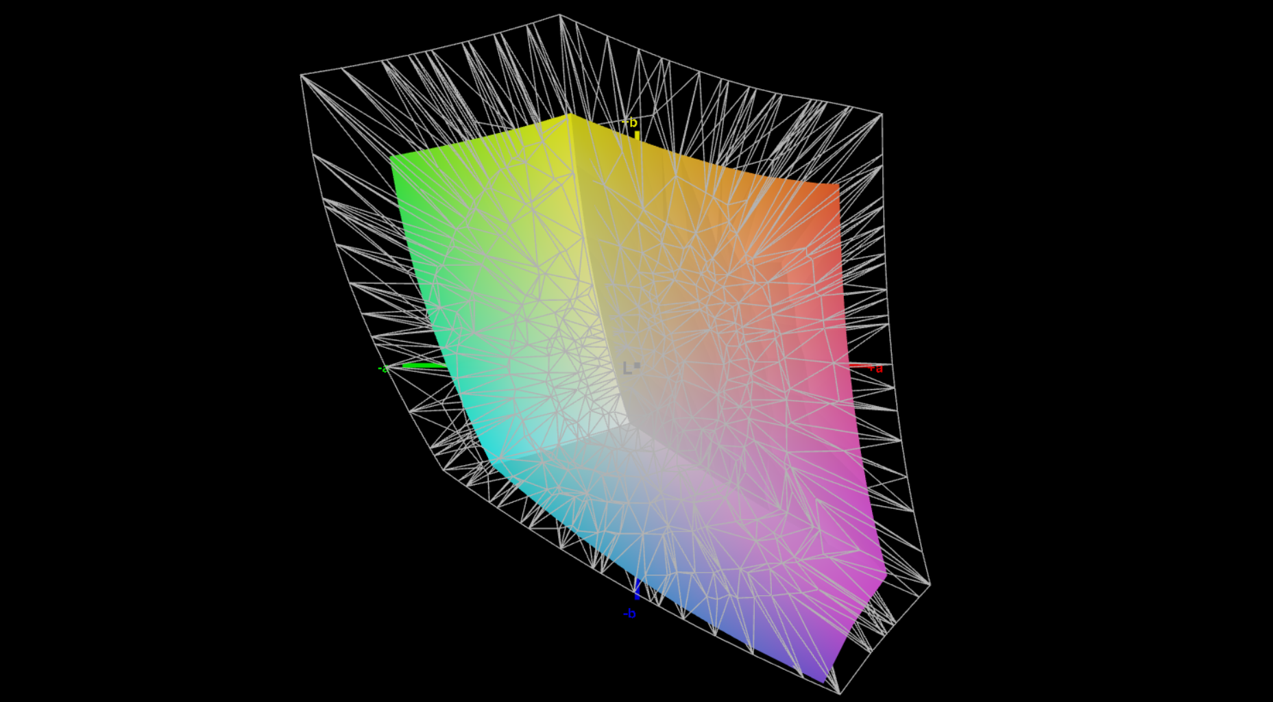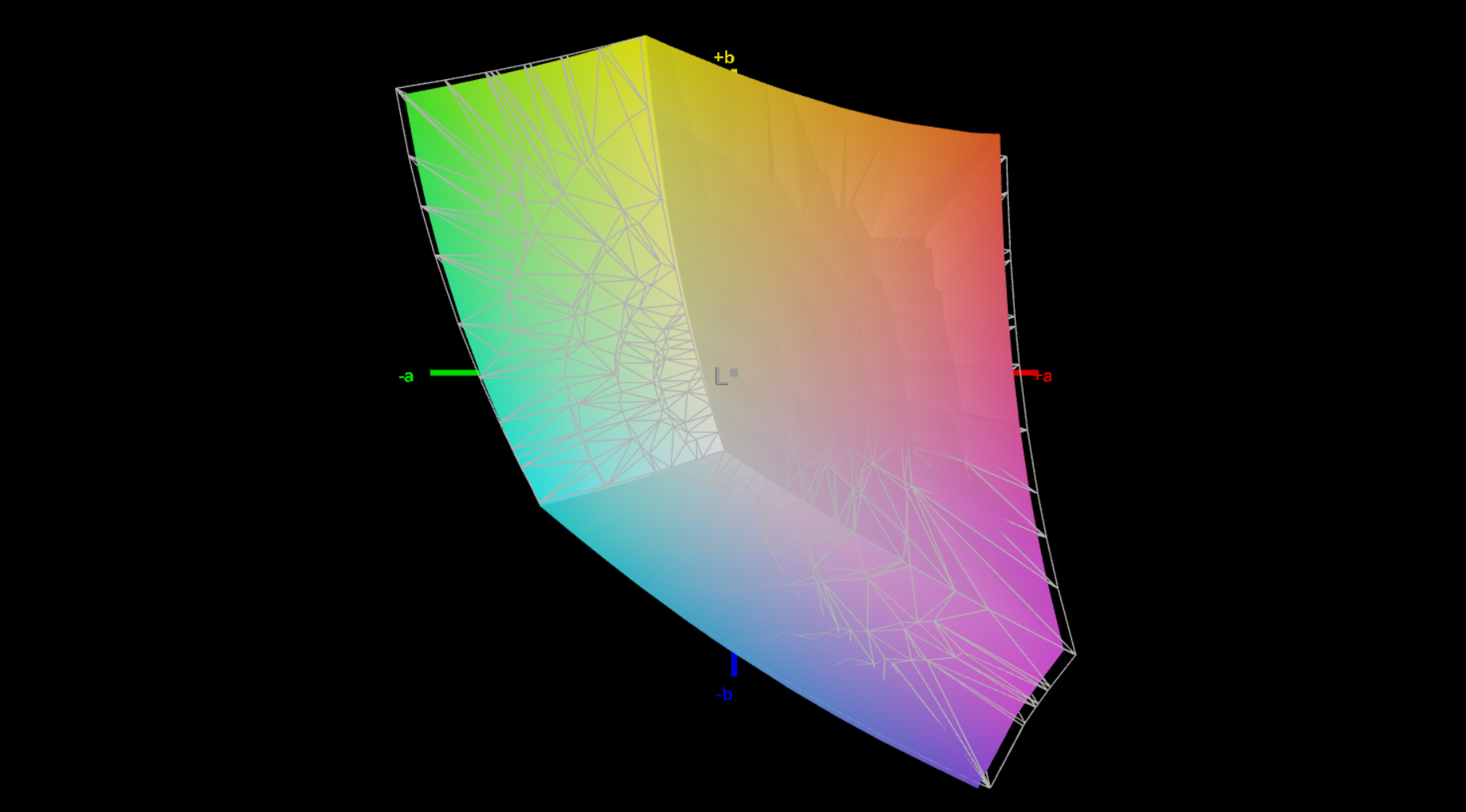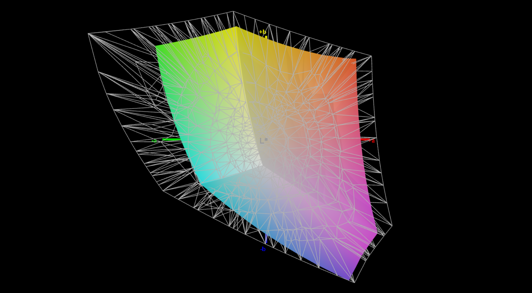 La luminosità è pubblicizzata come 500 cd/m², che il nostro campione non raggiunge (max. 489, media: ~470 cd/m²). Tuttavia, il livello del nero è basso, il che porta a un rapporto di contrasto massimo molto buono. La calibrazione di fabbrica è debole e possiamo migliorare notevolmente il display con la nostra calibrazione (il profilo è disponibile per il download gratuito nel riquadro a destra), ma questo riduce anche la luminosità massima di circa 40 cd/m². Grazie alla copertura sRGB completa, è possibile anche l'editing delle immagini.