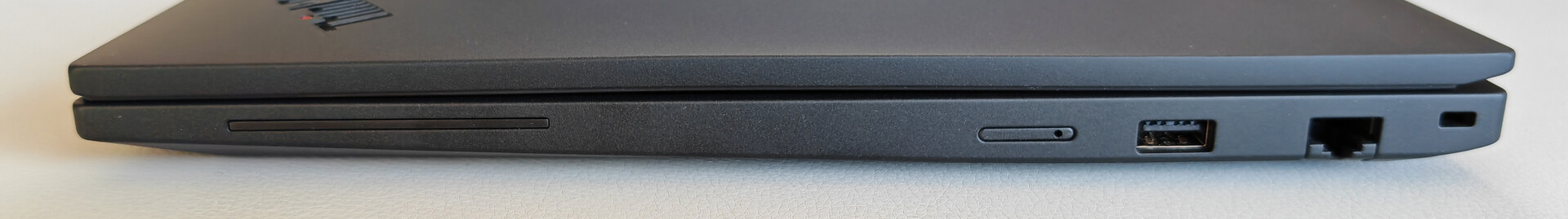 Ci sono due porte Thunderbolt 4 complete e due porte USB-A normali. Il nostro dispositivo di prova dispone anche di un lettore di schede nano SIM, e come opzione è disponibile anche un lettore di SmartCard. Il modulo Wi-Fi 7 ha raggiunto velocità di trasferimento stabili ed elevate nel test. La webcam da 5 MP con apertura meccanica e sensore IR scatta foto medie.