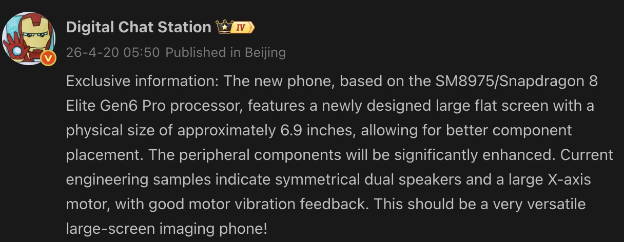 Come riferimento, si prevede che Qualcomm lancerà due chipset nella sua serie di flagship di prossima generazione: lo Snapdragon 8 Elite Gen 6 standard e l'8 Elite Gen 6 Pro 8 Elite Gen 6 Pro. Quest'ultimo dovrebbe essere un processore octa-core basato sul processo a 2 nm di TSMC. Potrebbe essere dotato di una GPU A850 e supportare la memoria LPDDR6.
