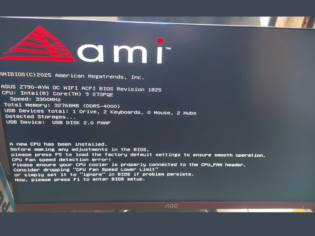 Nel post, ha detto: "Ci siamo quasi! Il 273PQE è riconosciuto. Claude ha modificato il 100% del BIOS, senza sostituire alcun modulo" Ha pubblicato le immagini della schermata iniziale del BIOS di American Megatrends. In seguito, ha aggiunto un post di follow-up e ha dichiarato: "Ha mostrato correttamente la prima schermata del BIOS... È ancora una schermata nera se premo F1, ma almeno la CPU è riconosciuta!"