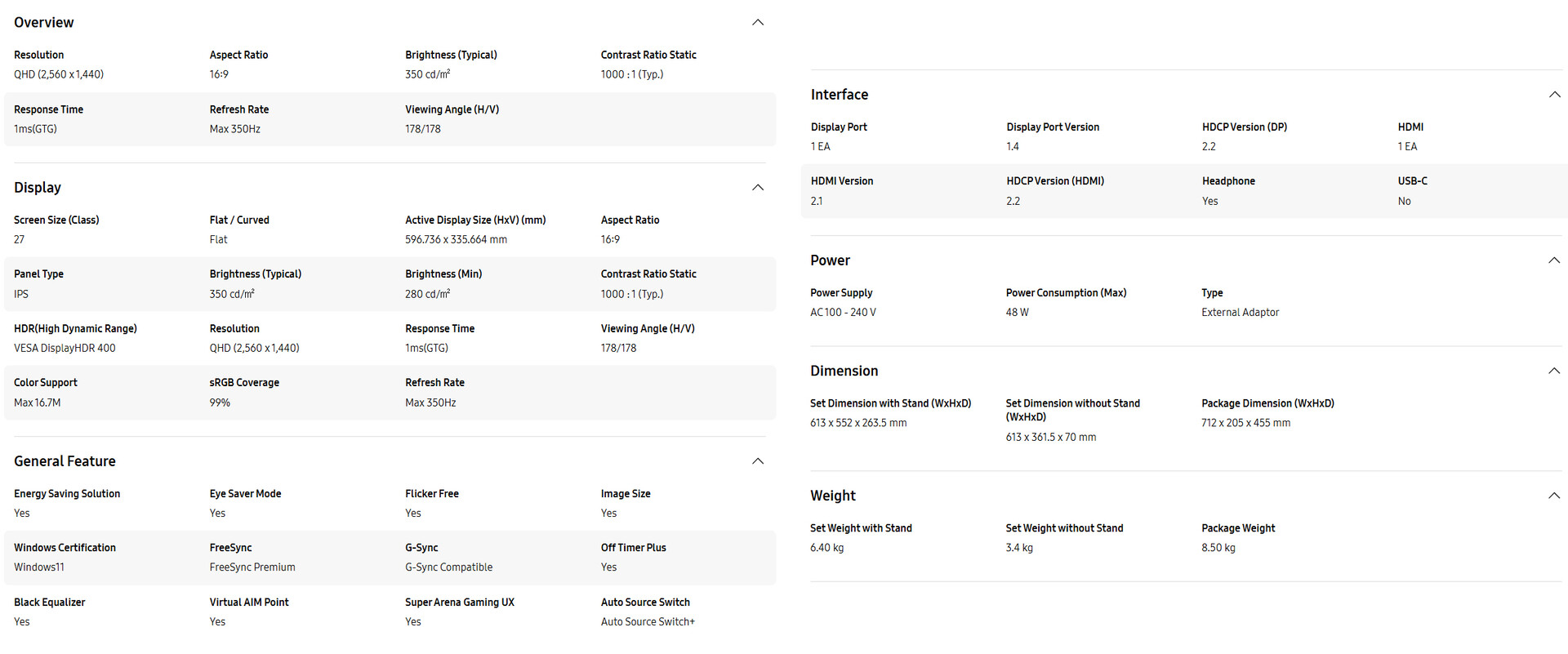 Per quanto riguarda le specifiche, è identico al modello cinese modello cinese. Per essere precisi, è dotato di un pannello Fast IPS da 27 pollici con una risoluzione di 1440p. Uno dei punti salienti del display è la frequenza di aggiornamento di 350 Hz. Abbinato al tempo di risposta GtG di 1 ms, Odyssey G60F dovrebbe offrire un'esperienza reattiva.