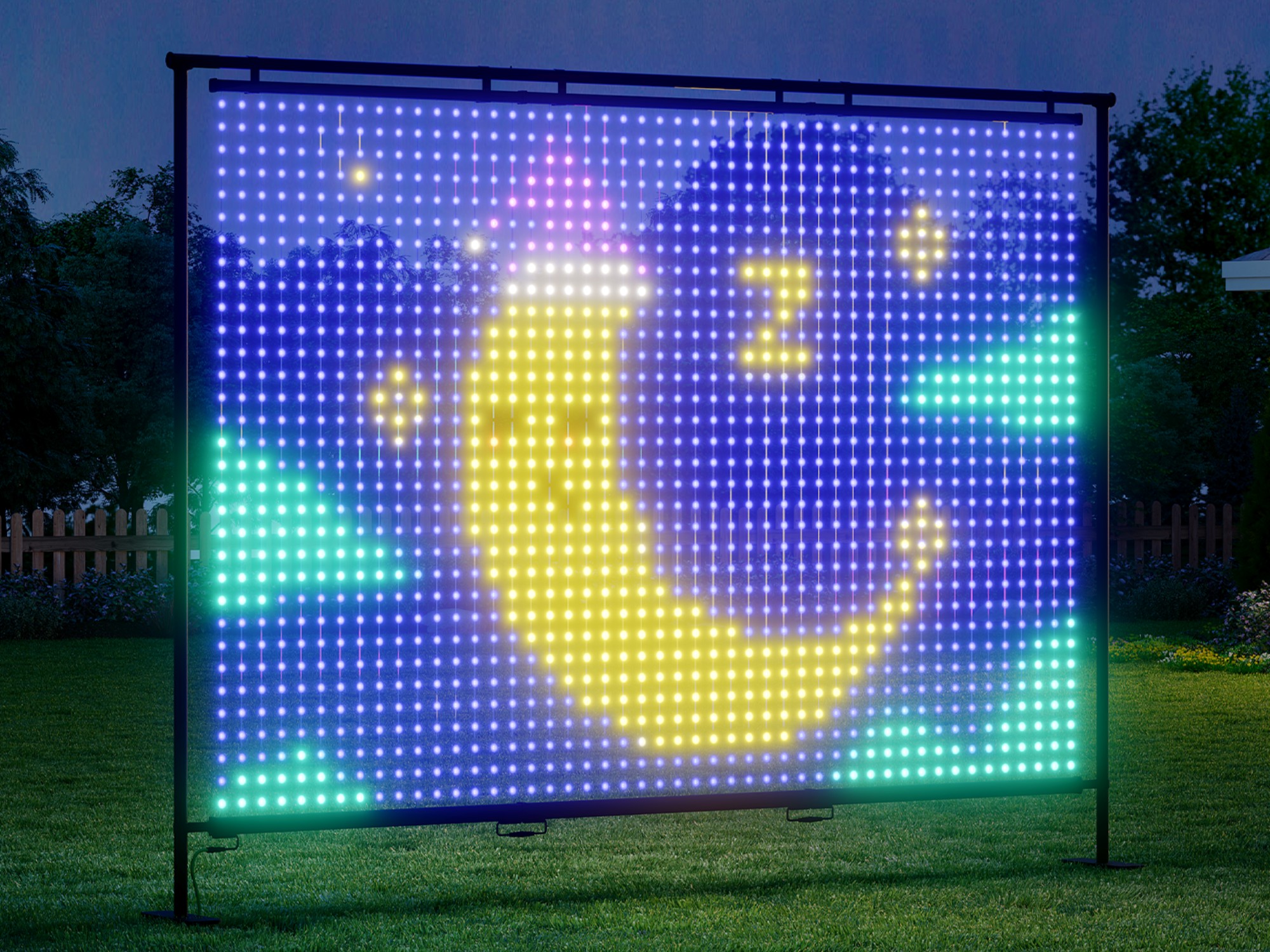 Il Lightwall Govee racchiude 1.536 LED RGBIC in una griglia precisa di 32×48 pixel, ottenendo un passo di pixel di soli 1,96 pollici - la più alta densità della sua categoria. Il risultato è un'immagine eccezionalmente nitida con sfumature di colore senza soluzione di continuità, sia che visualizzi una scena completa dall'altra parte del cortile, sia che riveli dettagli intricati da vicino. Grazie a una frequenza di fotogrammi di livello cinematografico di 35 FPS, gli effetti dinamici rimangono fluidi e senza ritardi, dando vita ad animazioni complesse con un movimento fluido e naturale.