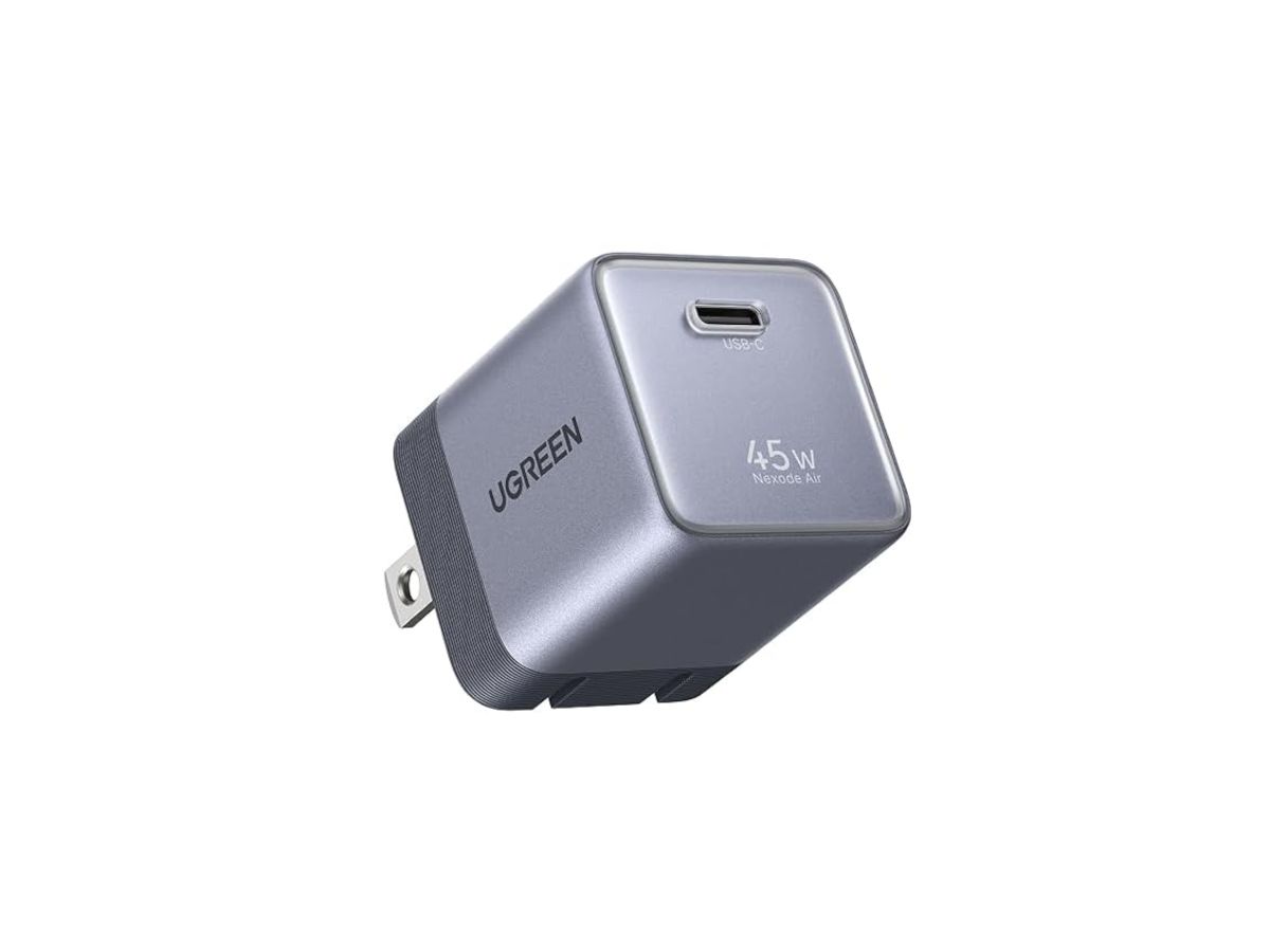 Il caricatore Nexode Air 45W GaN di Ugreen dispone di una singola porta USB-C, che può essere utilizzata per caricare un iPhone 17 al 70% o un iPad (A16) al 35% in mezz'ora. Questo modello supporta i protocolli di ricarica rapida PD, PPS, QC e altri. Dispone di uno strumento di monitoraggio della temperatura ThermalGuard e di altre funzioni di sicurezza, e la sua tecnologia GaN si dice che offra un'efficienza energetica del 93%. Il piccolo accessorio misura 1,21 x 1,21 x 1,42 pollici (~30,7 x 30,7 x 30,1 mm), e i suoi perni pieghevoli rendono il caricabatterie compatto ancora più facile da riporre e trasportare.