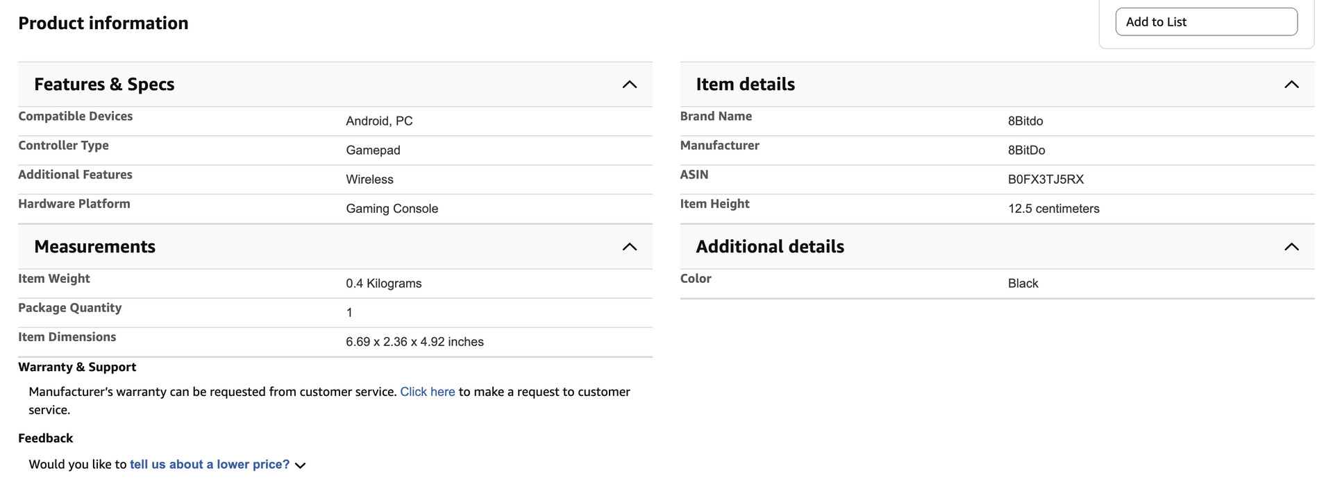Tuttavia, è possibile ricavare alcuni dettagli già a questo punto. Per esempio, Amazon indica che questo nuovo controller è wireless con supporto per Android e PC. In genere, 8BitDo, utilizzando questa descrizione, suggerisce che il controller supporta la connettività a 2,4 GHz per il PC e il Bluetooth per i dispositivi Android. Inoltre, il controller sarà disponibile in una finitura nera, che non ha ancora raggiunto i controller 8BitDo comparabili come l'Ultimate 2C Wireless.