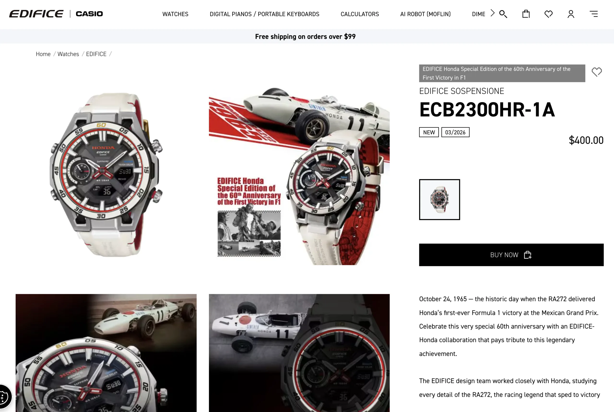 Casiol'attesissima collaborazione Edifice x Honda è ora ufficialmente in vendita negli Stati Unitidopo che l'anno scorso la sua uscita era stata ritardata nel 2025. Edifice Sospensione ECB2300HR-1A commemora il 60° anniversario della prima vittoria di Honda in Formula 1 nel 1965 e ha un prezzo di 400 dollari.