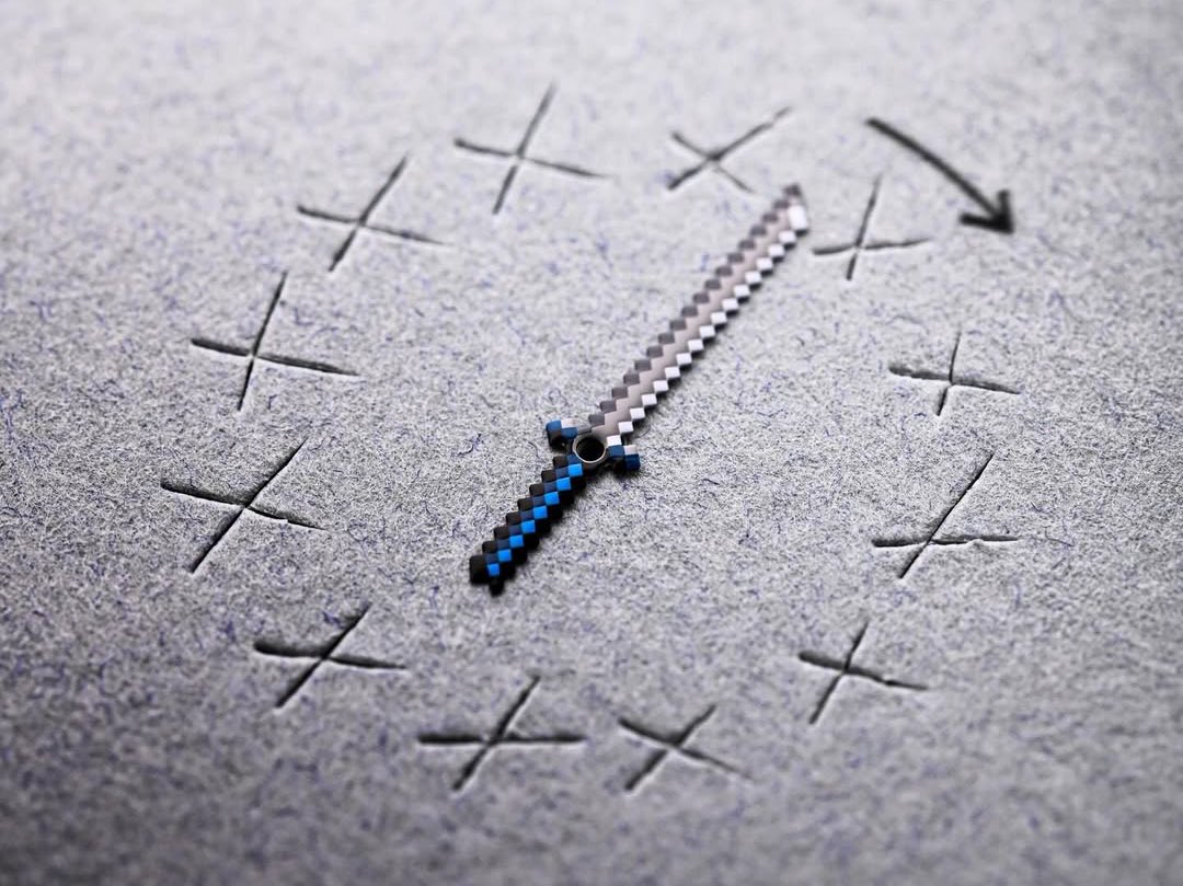 Il quadrante è il punto in cui il linguaggio di design fuori dagli schemi di Seconde/Seconde/è al centro della scena. Realizzato in un ricco blu sunburst, il quadrante cattura la luce in modo dinamico, ma la parte più divertente è rappresentata dalla lancetta dei minuti a katana in pixel-art che attraversa il quadrante, con tutti gli indici applicati che sembrano essere stati tagliati direttamente dalla spada.