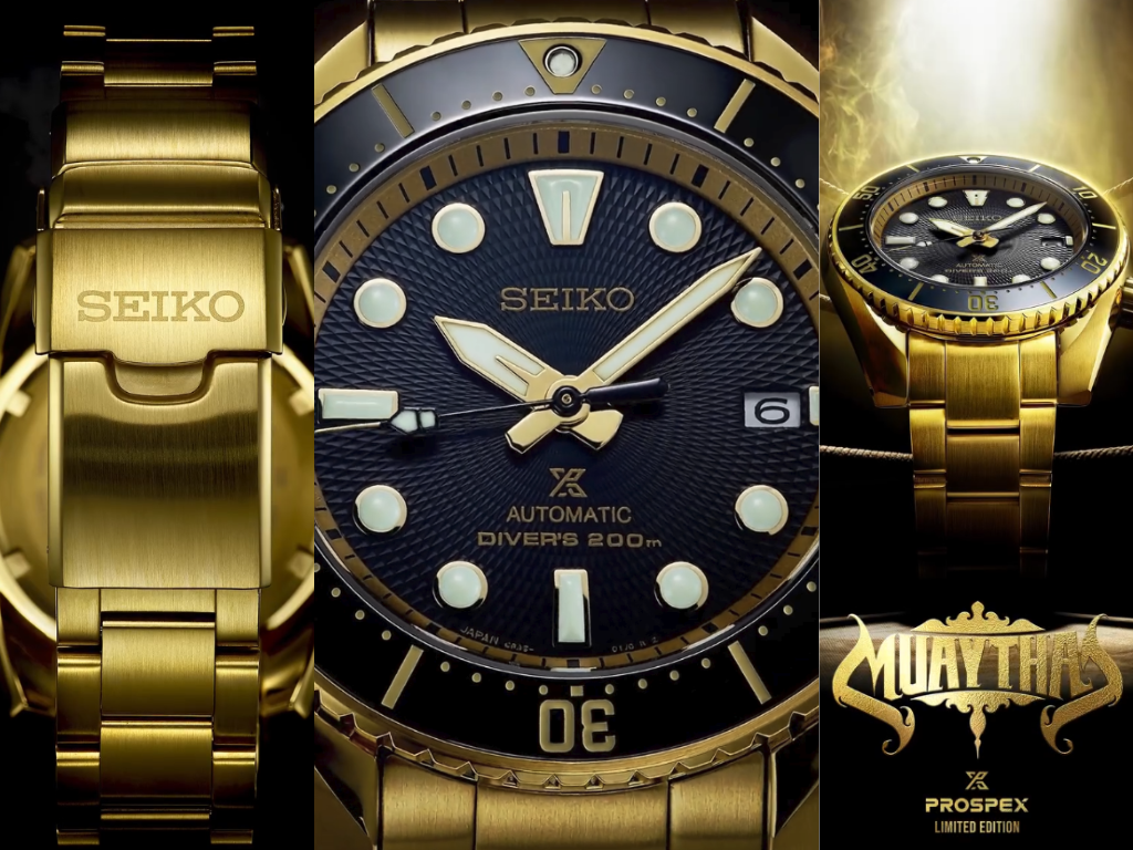 Seiko La Tailandia ha ora rivelato completamente l'edizione limitata Prospex Muay Thai che aveva stuzzicato in precedenzae l'orologio finale risulta essere un audace subacqueo interamente in oro, costruito intorno a un quadrante nero testurizzato e a un bracciale d'oro abbinato.