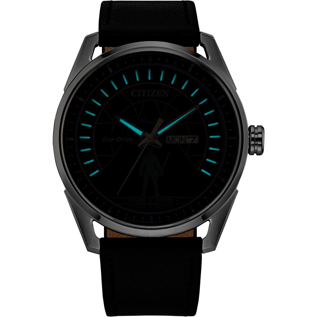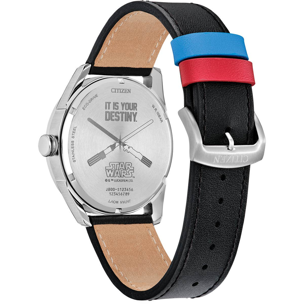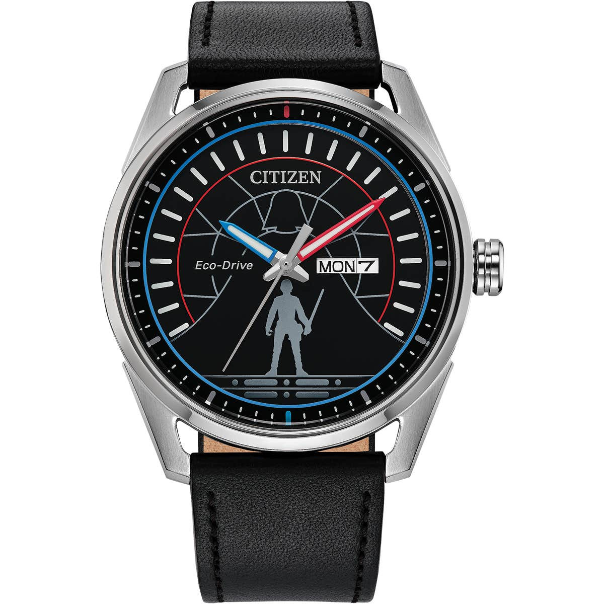 Il quadrante mostra una grafica dell'iconico duello tra Luke Skywalker e Darth Vader a Cloud City, nel film L'Impero colpisce ancora. Una silhouette di Skywalker è visibile a ore sei, mentre l'elmo di Vader è presente nella parte superiore del quadrante. L'orologio utilizza lancette rosse e blu per rappresentare le loro spade laser, che sono ulteriormente completate dai fermacinturini abbinati sul cinturino in pelle nera.