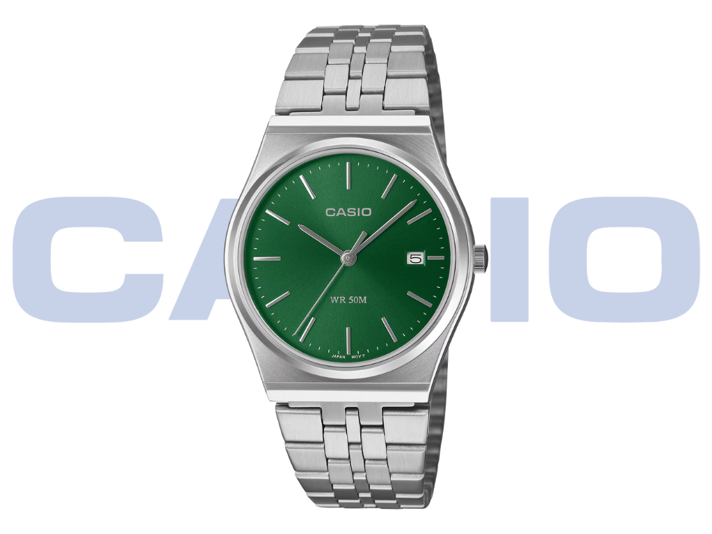 Casio ha presentato il suo nuovo MTPB145DC-3AV in acciaio inossidabile, con uno stile vintage degli anni '80. Al prezzo di 110 dollari negli Stati Uniti, questo orologio è un vero e proprio ritorno al passato. Abbina un quadrante verde minimalista con una cassa classica e un cinturino in acciaio.