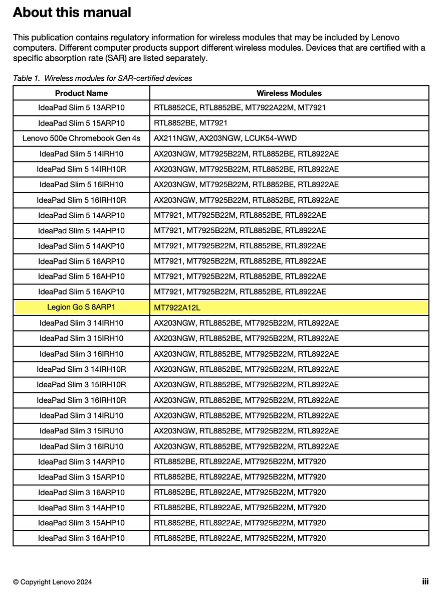 Le recenti scoperte di VideoCardz confermano almeno la presenza dell'architettura Rembrandt, che combinerà una GPU RDNA 2 e core CPU Zen 3+ come una delle APU della serie Zen 2 di AMD. Inoltre, un documento intitolato 'Regulatory Notice for Wireless LAN/WAN modules' (Avviso normativo per moduli LAN/WAN wireless) conferma effettivamente che il modello Legion Go S arriverà con la connettività Wi-Fi 6E, proprio come il modello esistente Legion Go. Purtroppo, non è ancora chiaro quando Lenovo rivelerà ufficialmente Legion Go S, per non parlare dei modelli Legion Go 8AHP2 e Legion Go 8ASP2 che sono emersi il mese scorso.