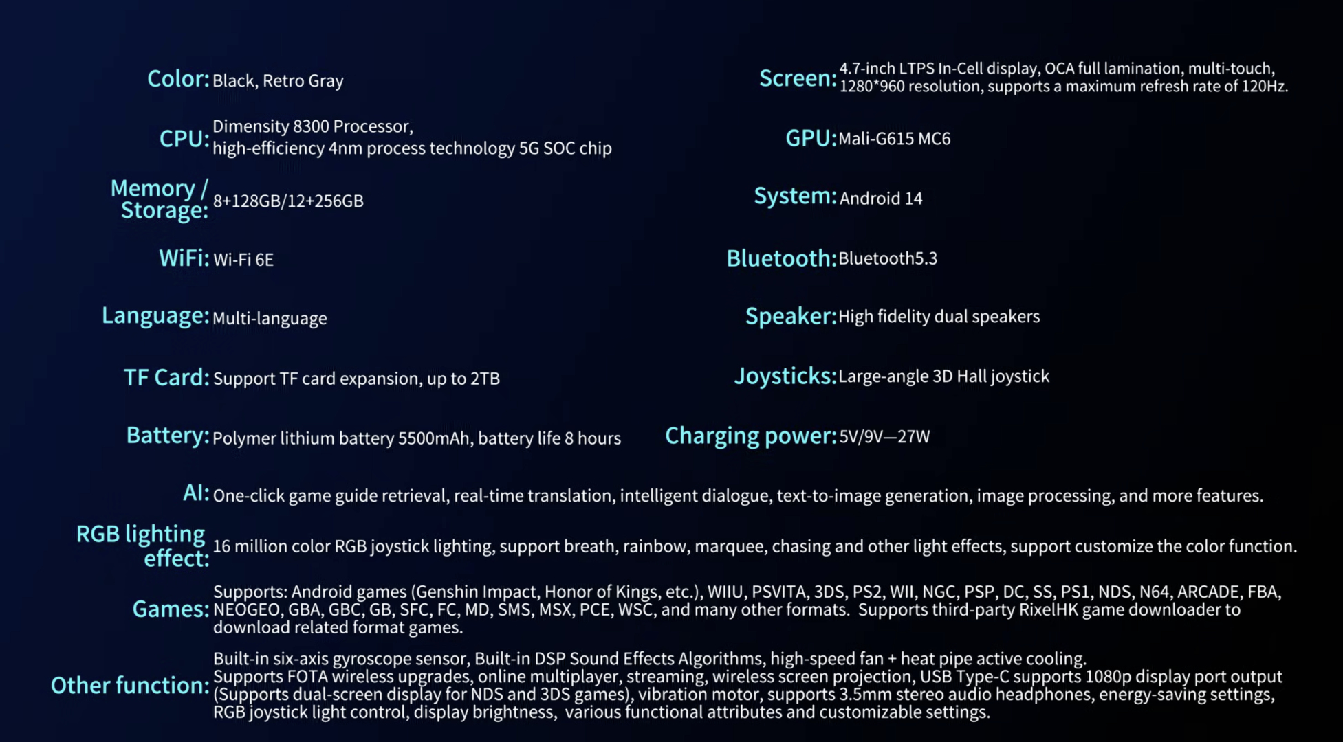 Sebbene i 120 Hz siano al di sopra di molti giochi retrò, la frequenza di aggiornamento consente l'uso del Black Frame Insertion (BFI) per ridurre la sfocatura del movimento, pur mantenendo un'esperienza di gioco a 60 Hz. Inoltre, l'RG477V dispone di una batteria da 5.500 mAh che può essere ricaricata a 27 W, nonché di un lettore di schede microSD che gestisce schede fino a 2 TB.