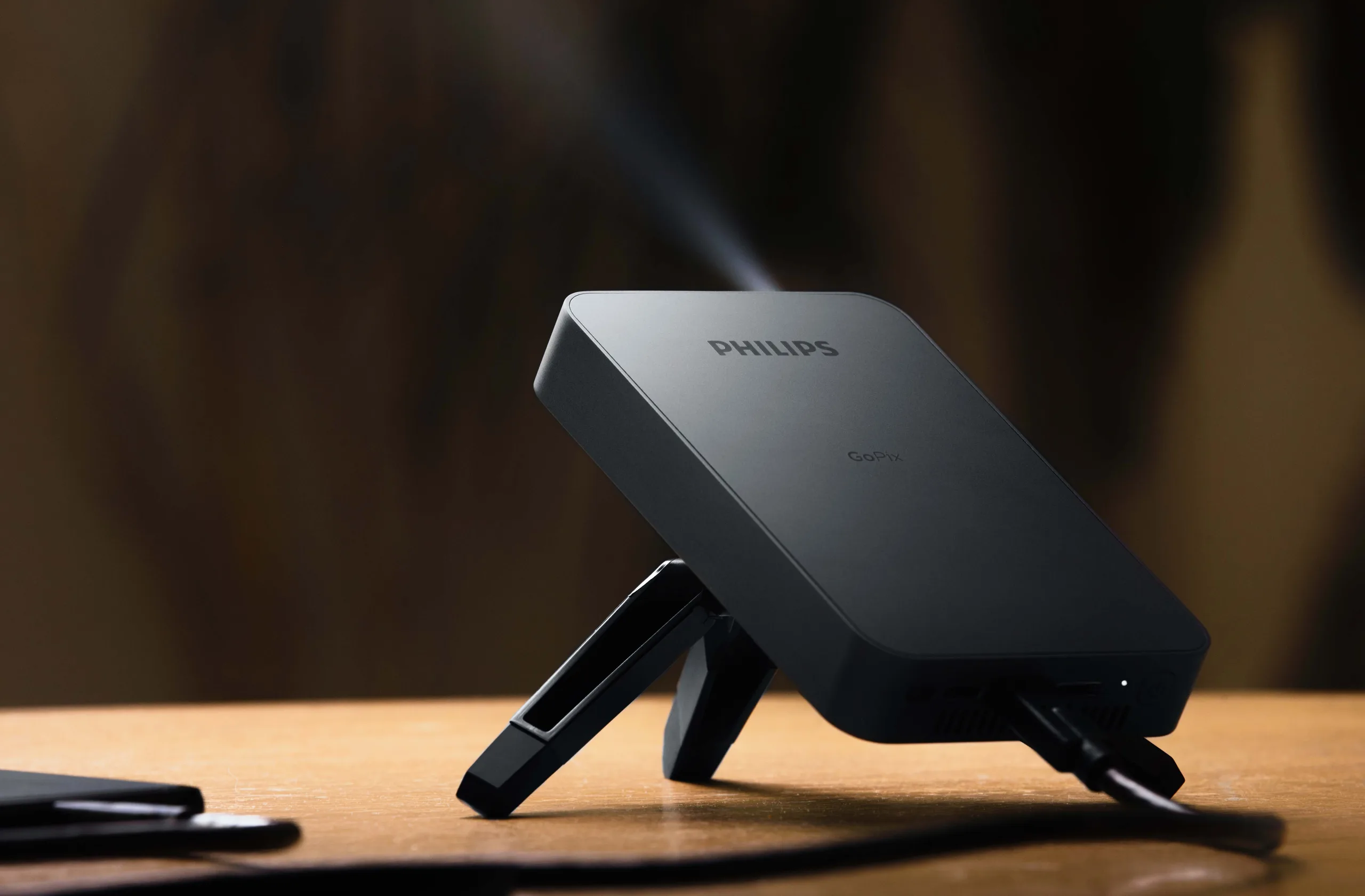 Rilasciato alla fine dello scorso anno, il Philips GoPix 1 è un proiettore DLP LED portatile di fascia alta che può produrre immagini fino a 75 pollici di diagonale. Il dispositivo ha una risoluzione nativa di 854 x 480 px e può supportare immagini con una risoluzione fino a 1920 x 1080 px