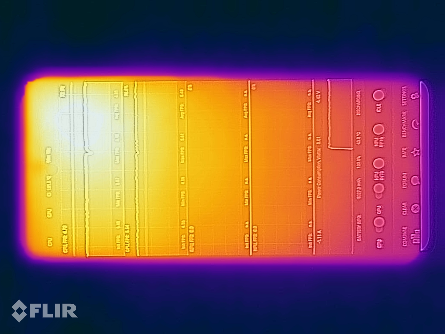 (+) In idle, la temperatura media del lato superiore è di 28.4 °C / 83 F, rispetto alla media deld ispositivo di 32.9 °C / 91 F.