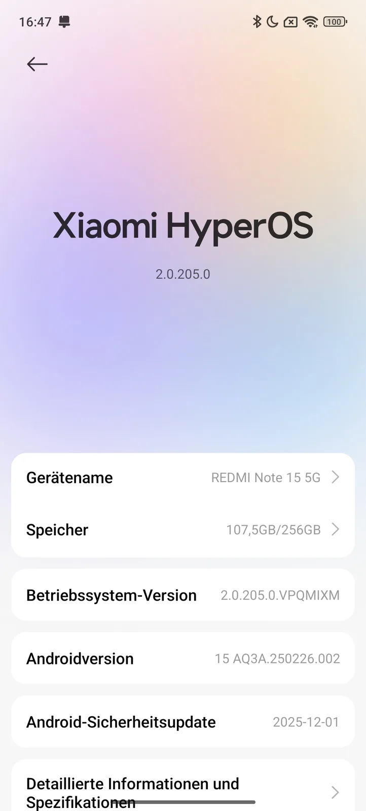 Il Redmi Note 15 5G viene fornito con Google Android 15 e HyperOS 2.0 di Xiaomi. Secondo il produttore, è previsto che riceva aggiornamenti di versione fino a Android 19, oltre a un totale di sei anni di patch di sicurezza, fino a gennaio 2032.