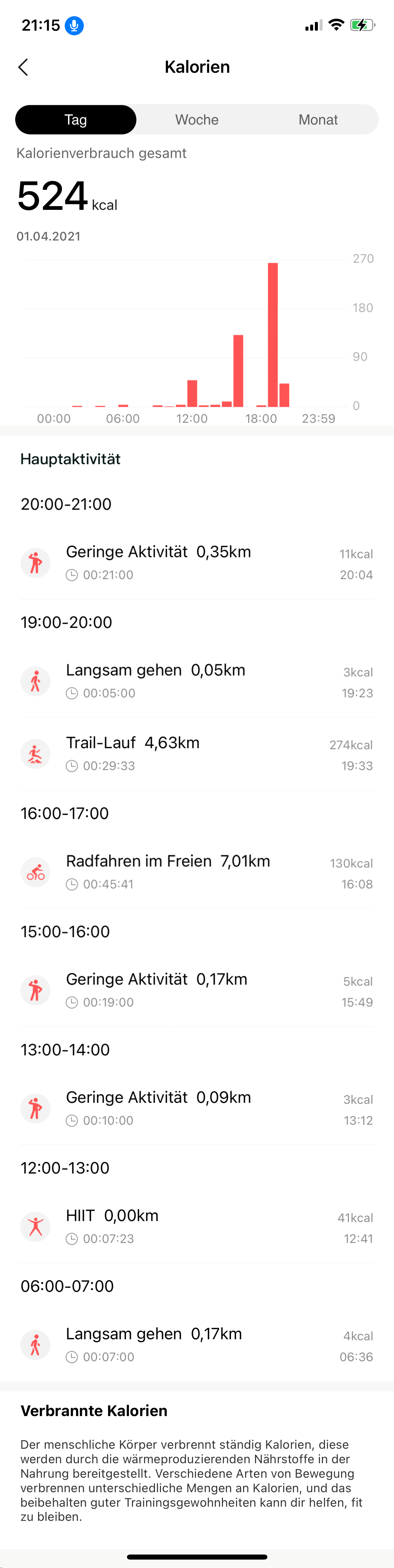 È possibile attivare il riconoscimento automatico individualmente per la corsa all'aperto, il tapis roulant, la camminata, la camminata indoor, il ciclismo outdoor, il cross training, il vogatore e il nuoto in piscina. Inoltre, è possibile impostare la sensibilità con cui lo smartwatch reagisce all'attività di chi lo indossa e se registra automaticamente l'allenamento rilevato o solo dopo il feedback dell'utente. In questo modo, Huami/Zepp combina l'approccio di Huawei, i cui dispositivi indossabili inizialmente emettono solo un messaggio che deve essere riconosciuto, e Fitbit, che inizia a registrare automaticamente dopo il riconoscimento.