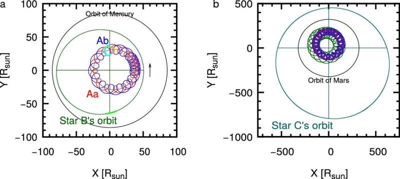 La stella più massiccia di questo sistema si chiama Aa ed è più massiccia e più calda del Sole. Questo vale anche per gli altri due oggetti celesti situati nelle vicinanze. Ma la stella C ha una massa e una temperatura simili a quelle del Sole, e il suo periodo orbitale è di 1.046 giorni. Pertanto, questa scoperta è una novità mondiale e potrebbe consentire agli scienziati di scoprire sistemi simili nell'universo.