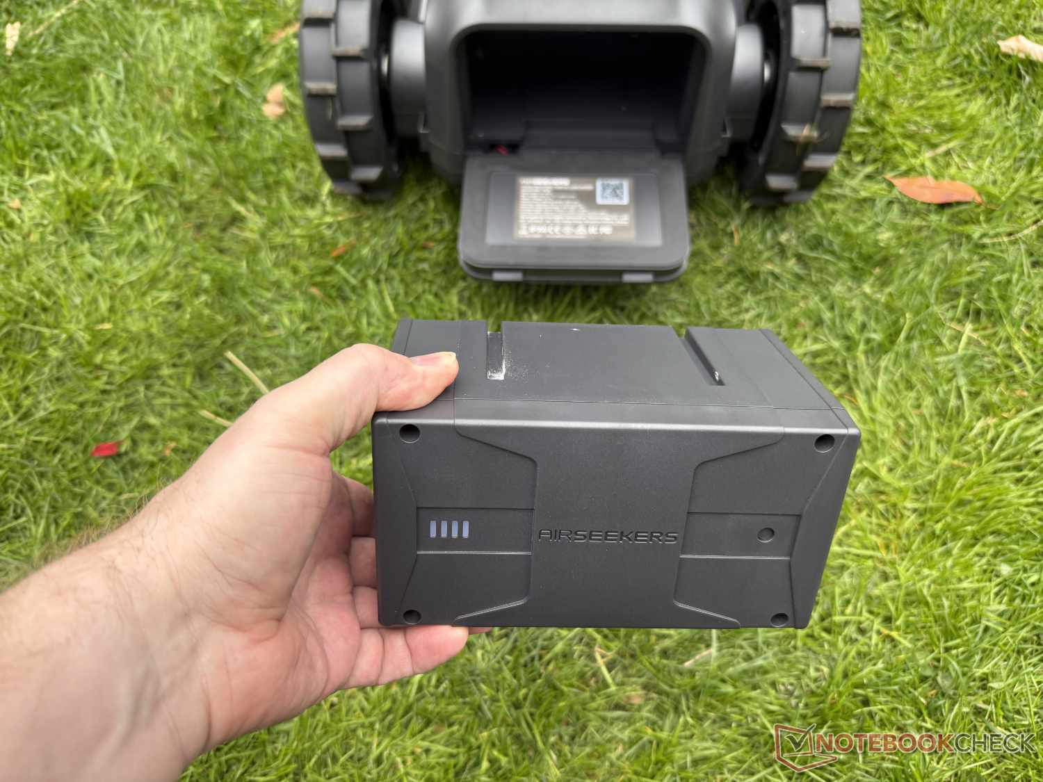 Il produttore promette un'autonomia di tre ore con l'enorme batteria da 15 Ah. In pratica, l'Airseekers Tron ha battuto questo tempo, falciando circa 350 metri quadrati con la navigazione RTK e le impostazioni standard. In teoria, sarebbe stato possibile ottenere un'area ancora maggiore se non avesse cambiato spesso posizione senza falciare e con un sistema ridotto.