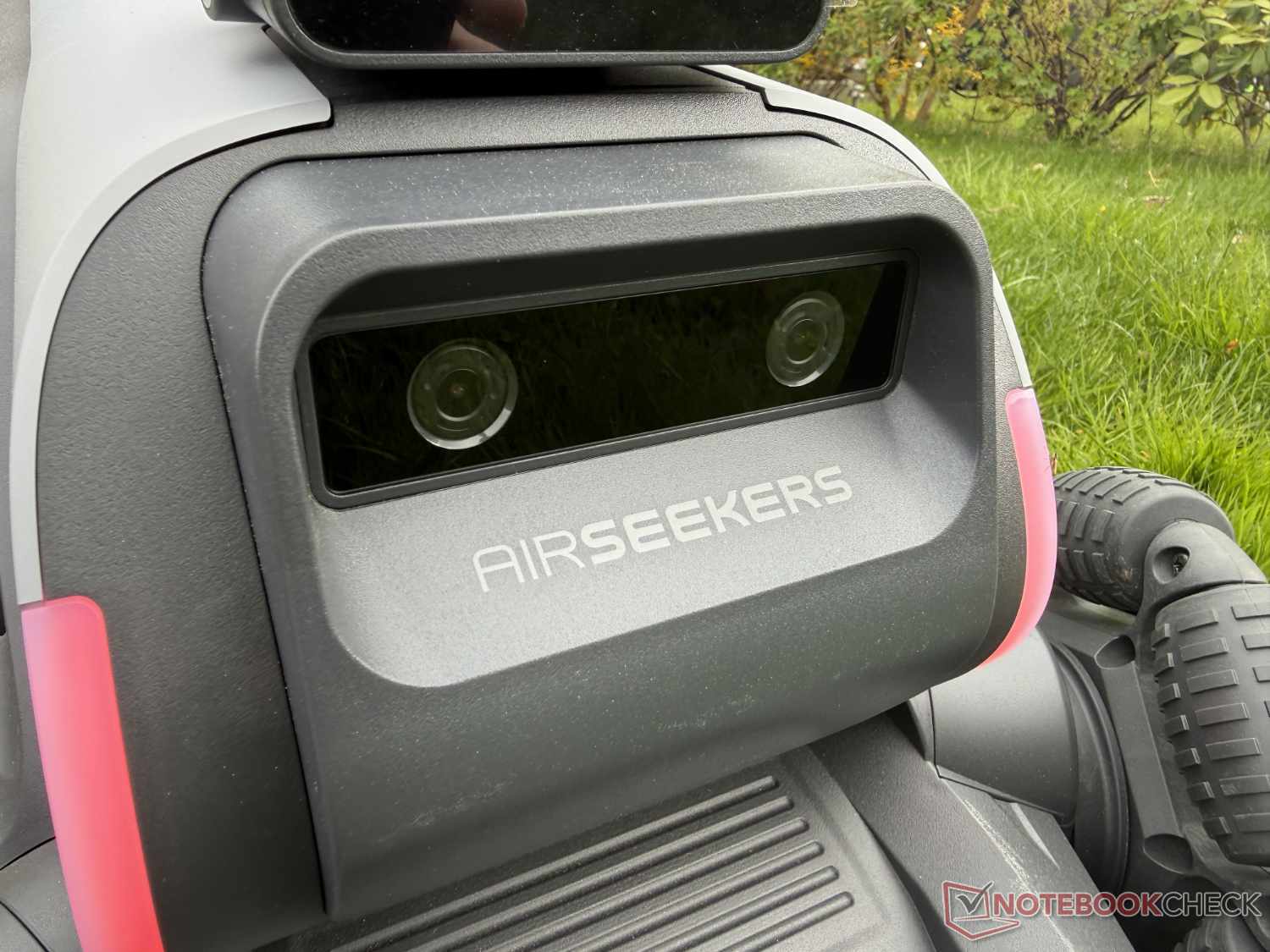 Inoltre, un problema importante di Airseekers Tron è già evidente qui nel test. Le due ruote anteriori inclinate causano continui spostamenti su prati non perfettamente piani. Ciò richiede un controsterzo costante che, insieme allo sterzo sensibile, porta rapidamente a percorsi piuttosto curvilinei di bordi effettivamente dritti.
