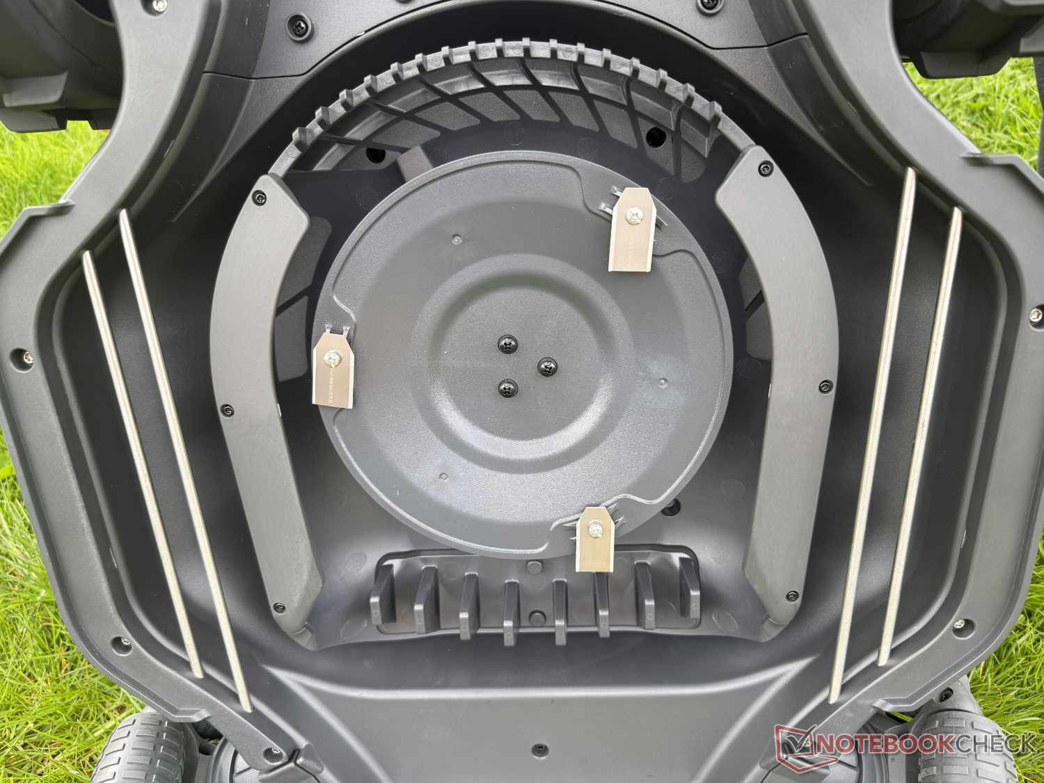 Nonostante le dimensioni generose del tosaerba robotizzato, non taglia con un tosaerba doppio, ma con un unico disco di taglio. Con i suoi 22 cm, è di dimensioni standard - e ha una caratteristica speciale. Sono installate un totale di sei lame, due sovrapposte a un buon centimetro di distanza l'una dall'altra. Queste sono progettate non solo per tagliare l'erba all'altezza impostata tra 30 e 90 mm (selezionabile con incrementi di 10 mm), ma anche per produrre un taglio d'erba ultra-fine allo stesso tempo. Il produttore lo chiama mulching FlowCut. In alternativa, è possibile installare in un secondo momento un disco di taglio più grande, da 300 mm, al prezzo di 50 dollari.