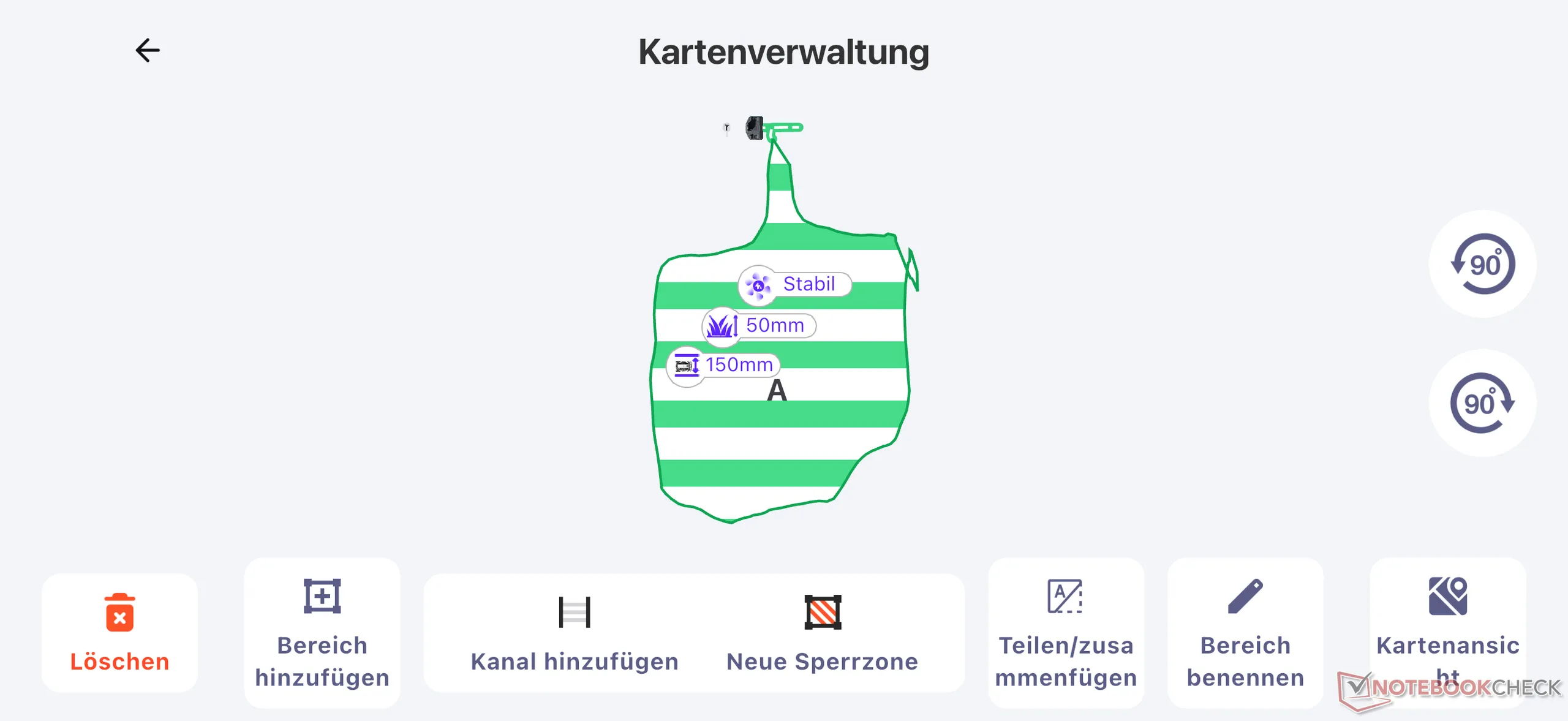 Questo lascia una striscia di prato larga almeno così, se cresce fino alle transizioni che non sono a livello del suolo. A ciò si aggiungono le piccole (o maggiori) distanze dovute alla mappatura e alle imprecisioni durante la navigazione. È quindi necessaria una rielaborazione manuale (come per quasi tutti i tosaerba robotizzati), anche se sono state posate ampie pietre di bordura del prato.