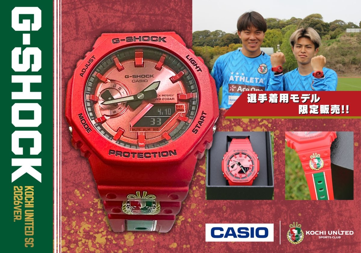 L'orologio Casio G-Shock Kochi United SC 2026 sarà lanciato in Giappone il 26 aprile, al prezzo di 22.000 ¥ (~$139). Sarà disponibile esclusivamente per i possessori di abbonamenti e i membri del club, e sono state prodotte solo 80 unità. Non è chiaro se in un secondo momento potranno essere rilasciate altre scorte.