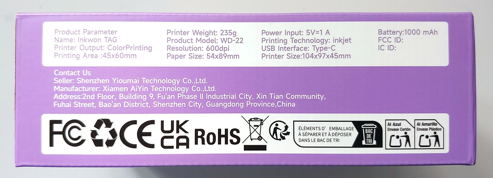 Inkwon Tag è disponibile in un Basic Pack, che include la stampante, una cartuccia d'inchiostro e tre tipi di carta; il Mega Pack raddoppia la carta e aggiunge una T-shirt, una tote bag e un portafoto. Il prezzo di listino è rispettivamente di 299 e 349 dollari, con i prezzi di Super Early Bird Kickstarter a 169 e 199 dollari.