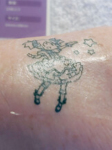 Gli utenti possono provare rapidamente idee di tatuaggi temporanei. Un foglio trasparente trasferisce un adesivo sulla parte superiore del tatuaggio stampato, poi viene gettato. Il foglio del tatuaggio viene posizionato a faccia in giù sulla pelle, bagnato e staccato per applicare l'immagine.