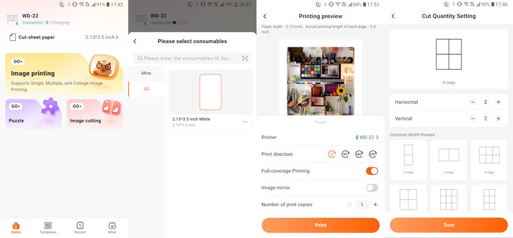 La stampa è facile: basta scegliere un'immagine dal telefono o dalla galleria dell'app, regolare le impostazioni come la luminosità o il ritaglio e avviare la stampa. L'applicazione include un'opzione per il tipo di carta, ma durante il test era disponibile solo una carta, quindi non è stato necessario apportare modifiche.
